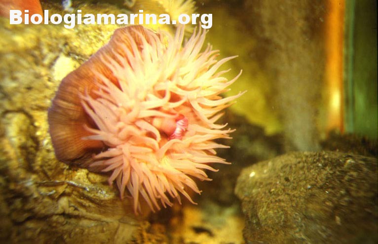 Entriamo nell’ordine degli attiniari, meglio conosciuti come anemoni di mare. Gli attiniari aderiscono al substrato tramite un disco di base. I tentacoli sono urticanti, sono retrattili e in numero svariato da sei a oltre cento. I tentacoli nel contempo convergono il cibo verso la bocca posta al centro. Le attinie sono polipi solitari fissati, per quanto non indissolubilmente al substrato, sprovvisti di scheletro proprio, come in tutti gli attiniari. Siamo certi che le immagini, meglio delle parole, daranno l’esatta idea dell’animale.