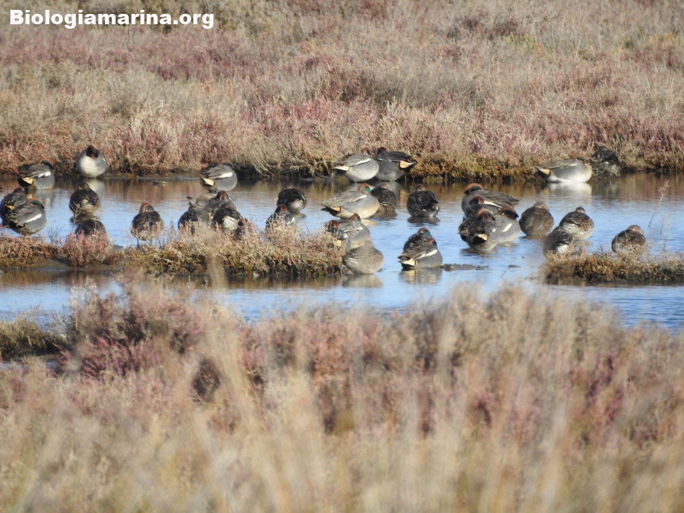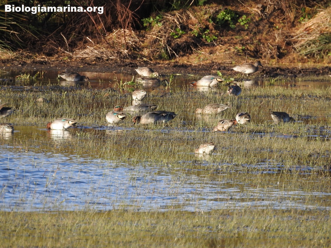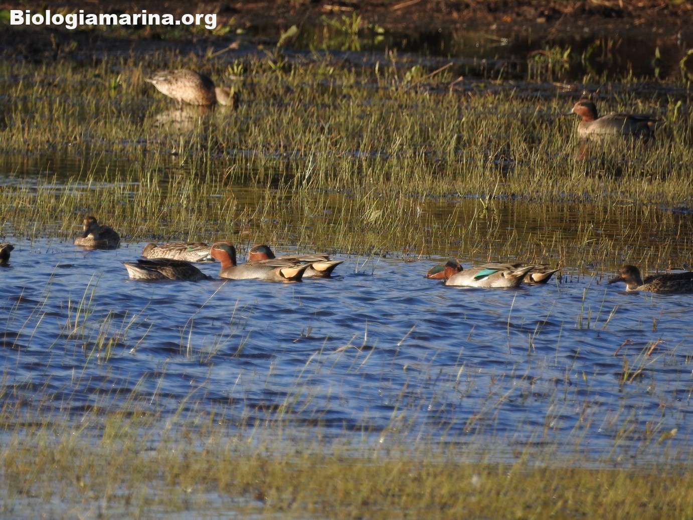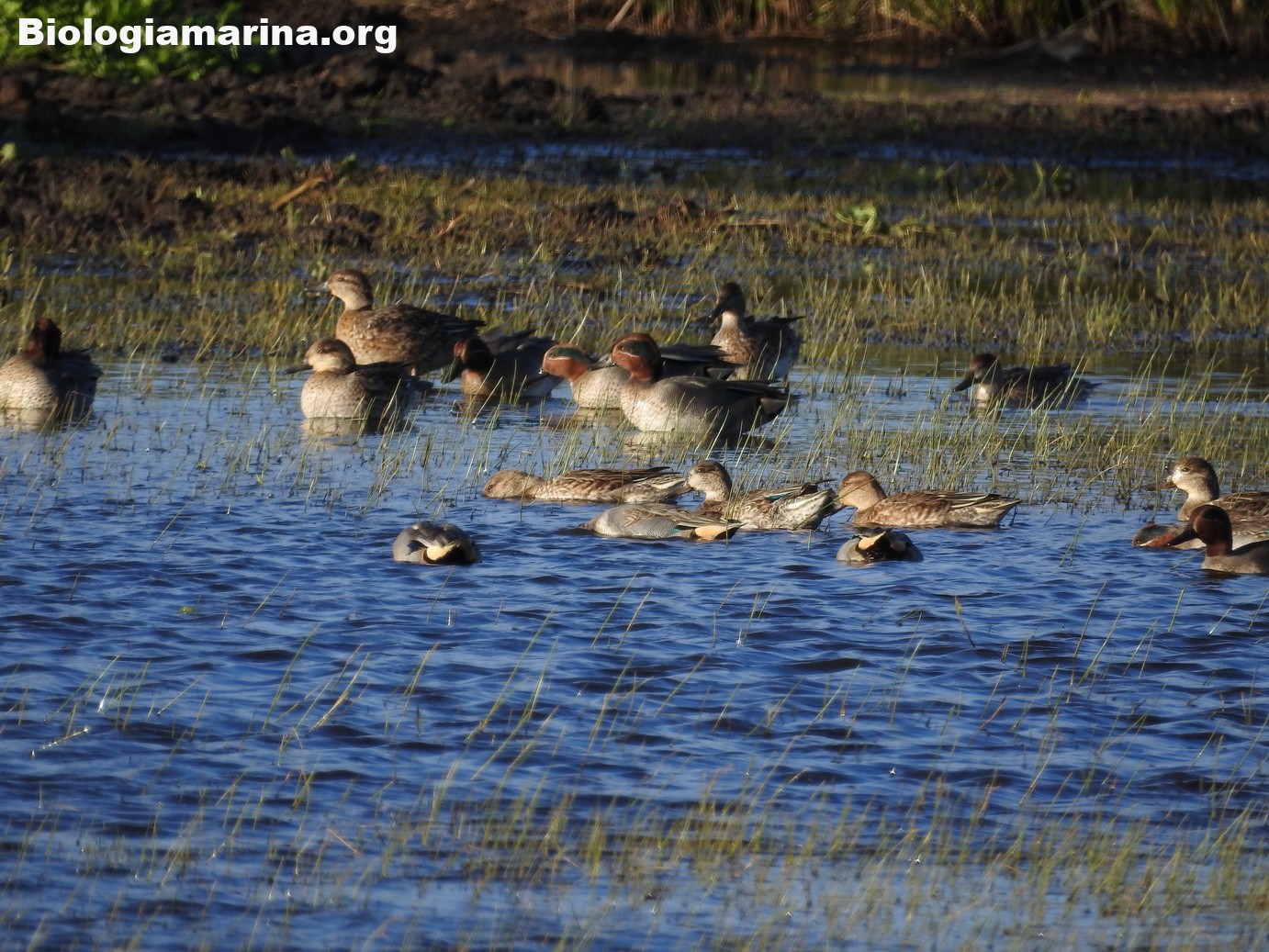 L’alzavola è tra le anatre europee la più piccola e potremo trovarla in stormi compatti mentre riposa nelle foci dei fiumi o nelle baie riparate nei periodi di migrazione o di svernamento.