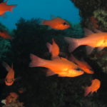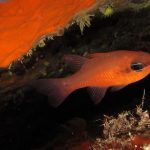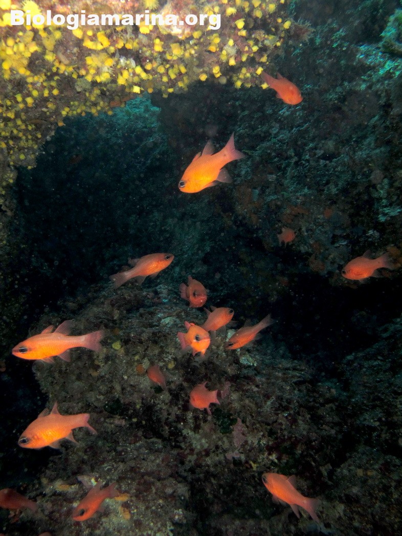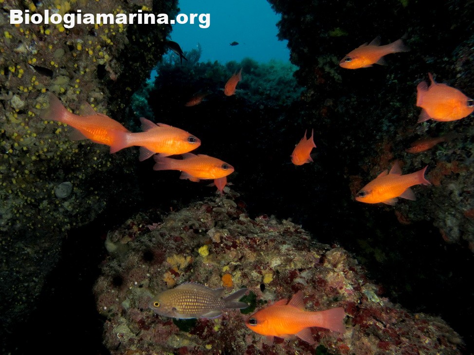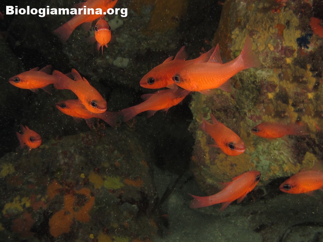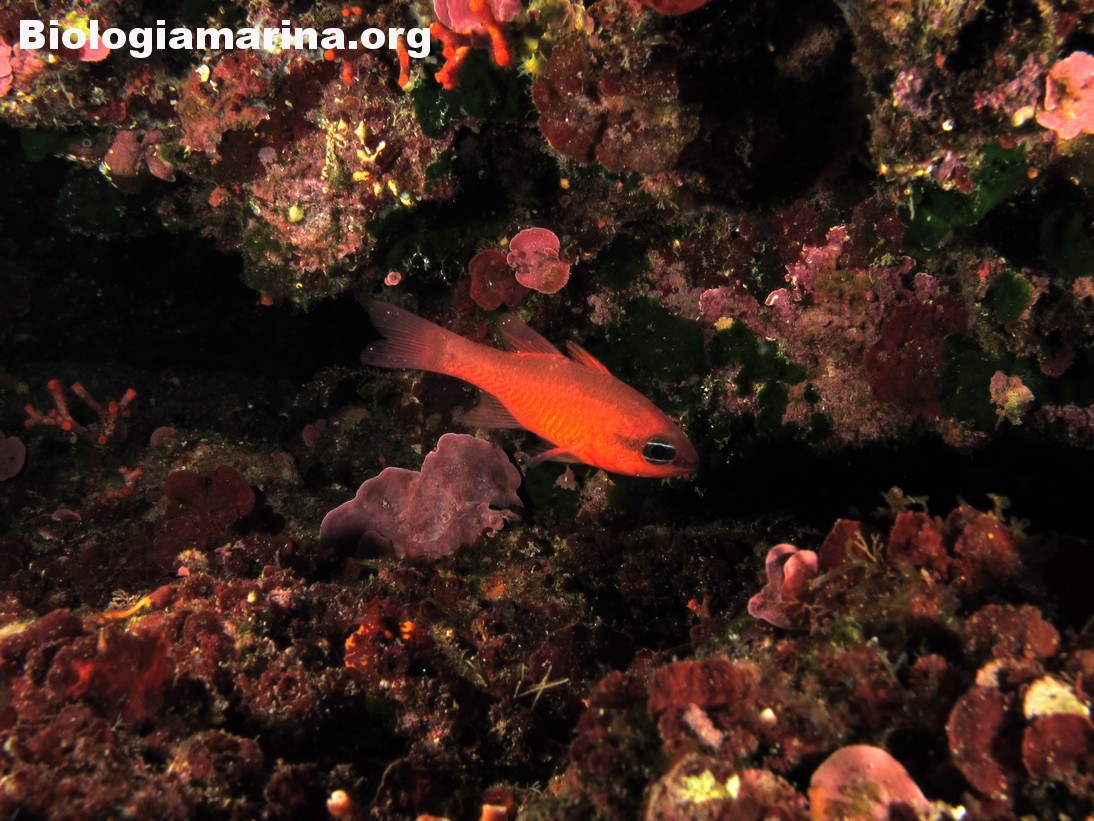 Il re di triglie, universalmente conosciuto come apogon è principe indiscusso di anfratti e spelonche sottomarine. Gregario, ma a volte solitario, il re di triglia ama sporgersi da sui rifugio per farsi notare, pronto con un piccolo guizzo a ripararvisi.
