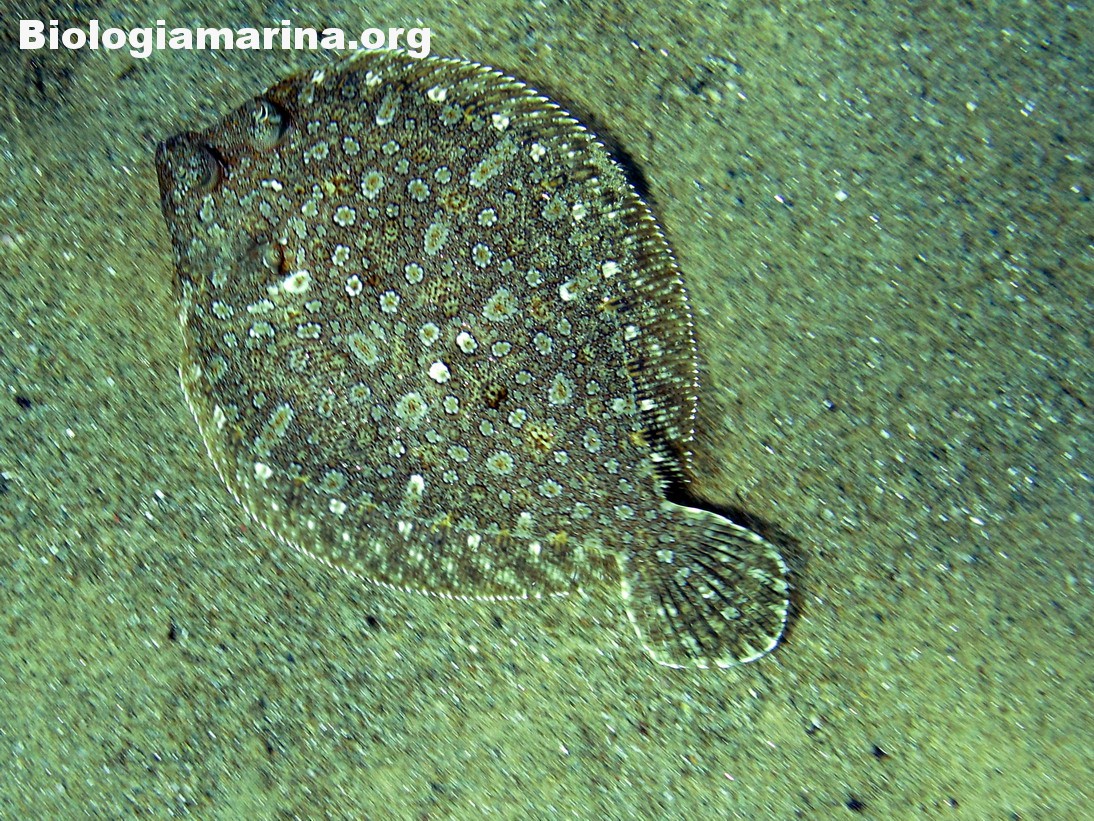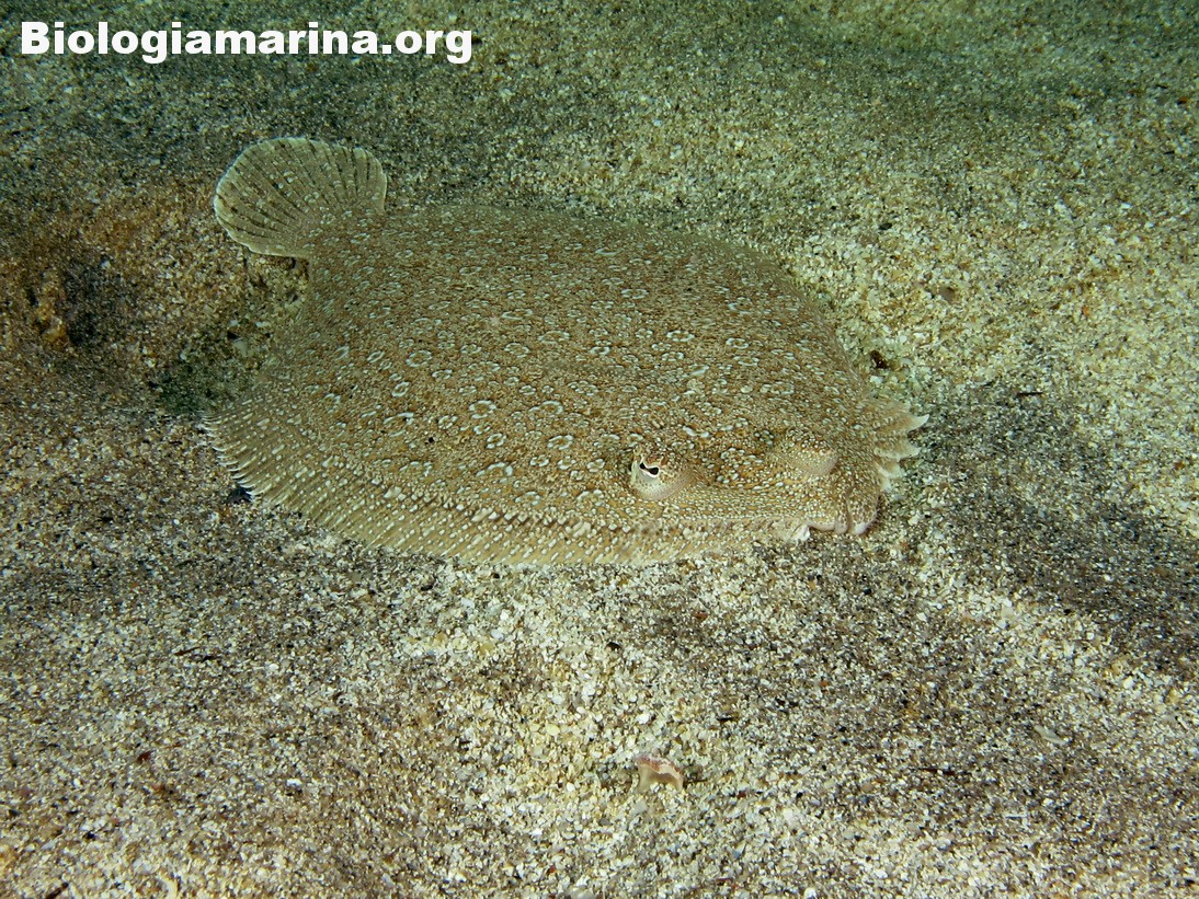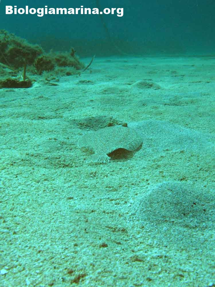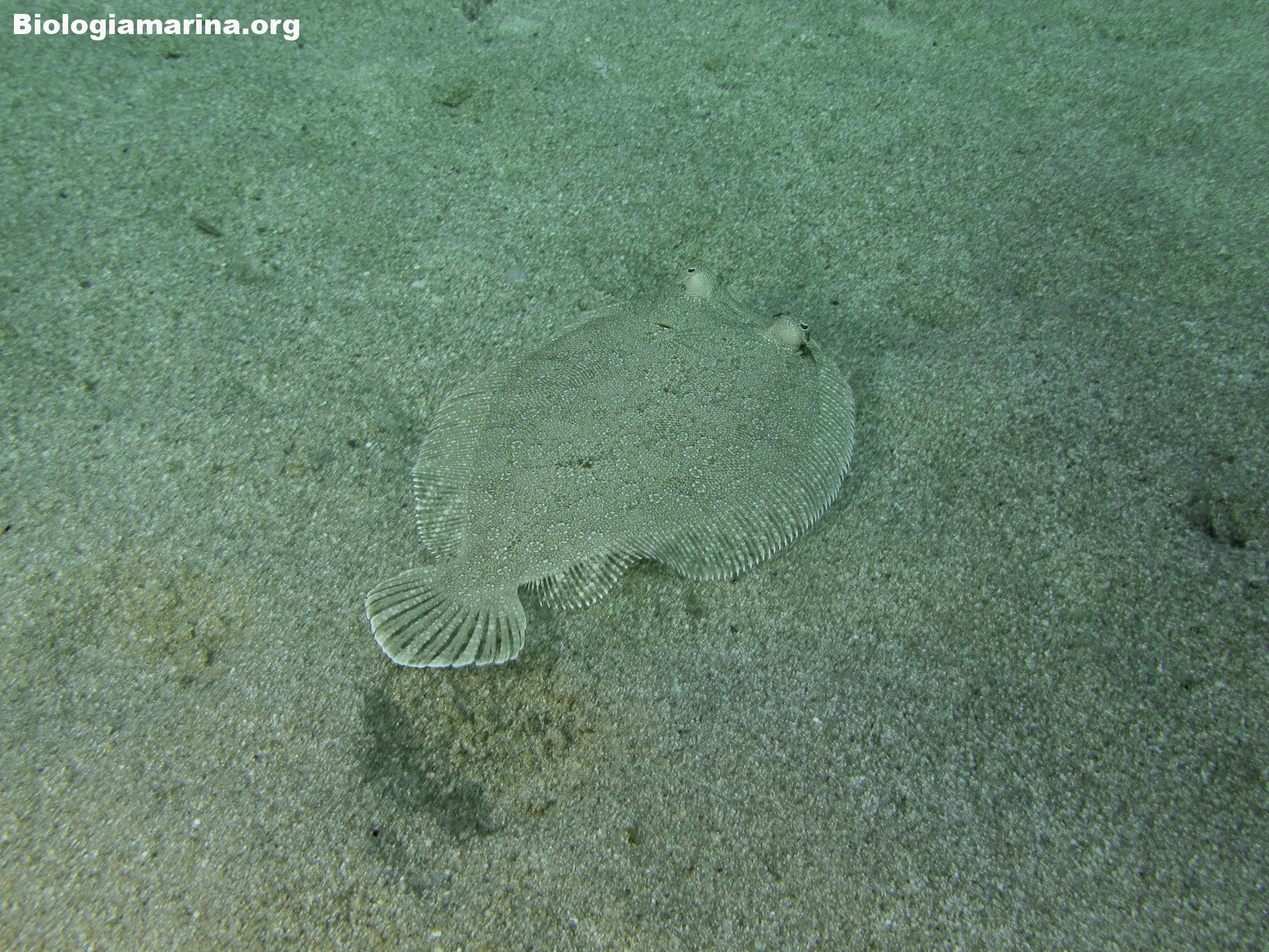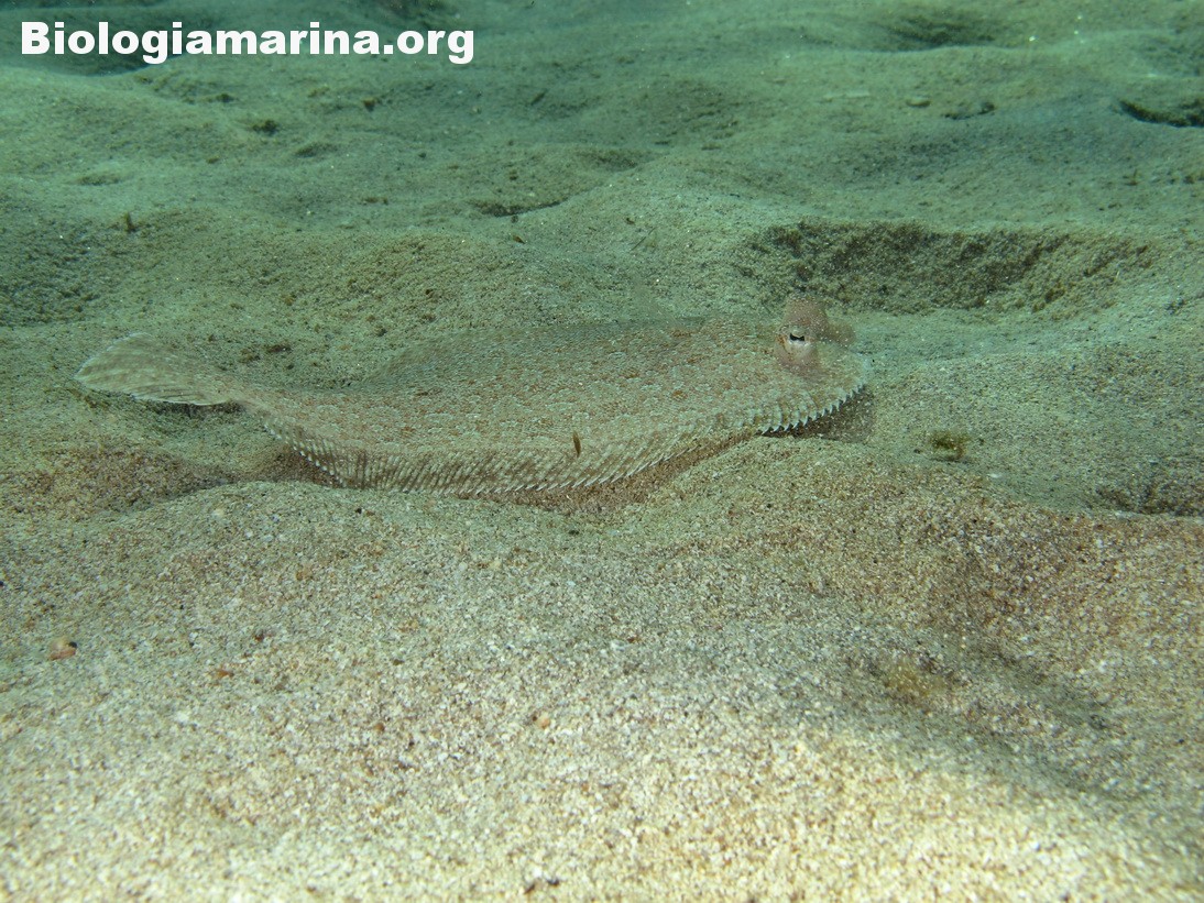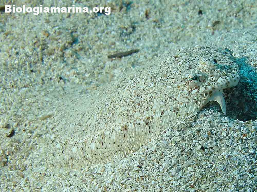 Il rombo di rena é pesce piatto sinistrorso rapidissimo nel nascondersi e mimetizzarsi sotto un sottilissimo strato di sabbia. Sono gli occhi sporgenti come due torrette periscopiche a tradire la sua presenza.