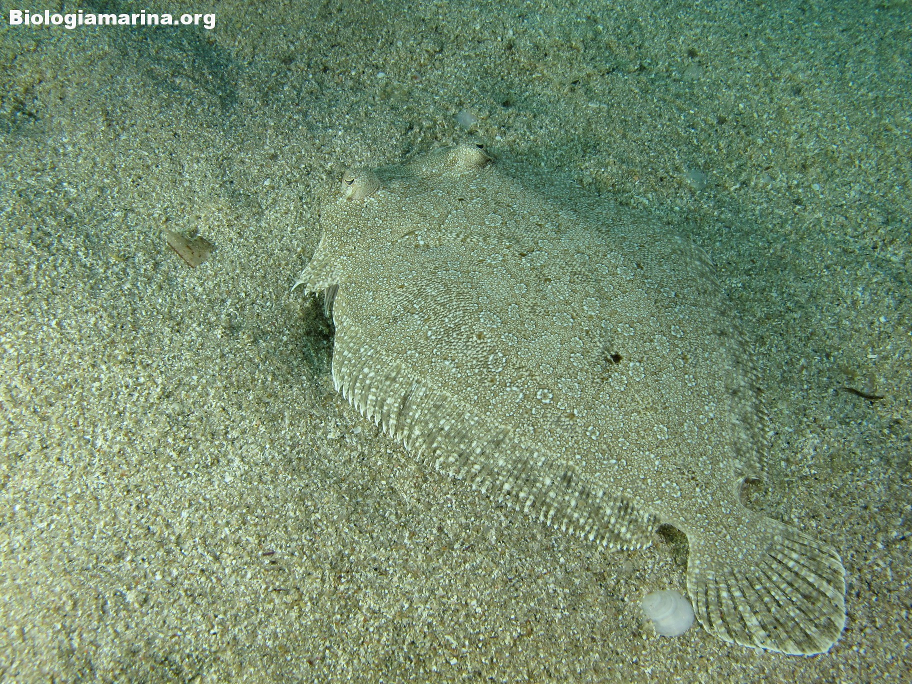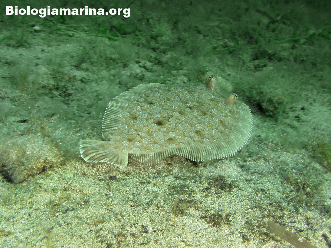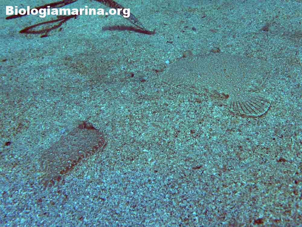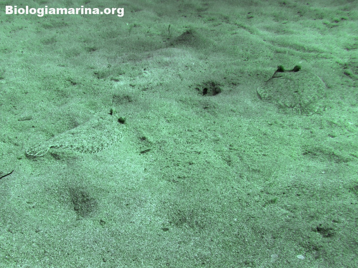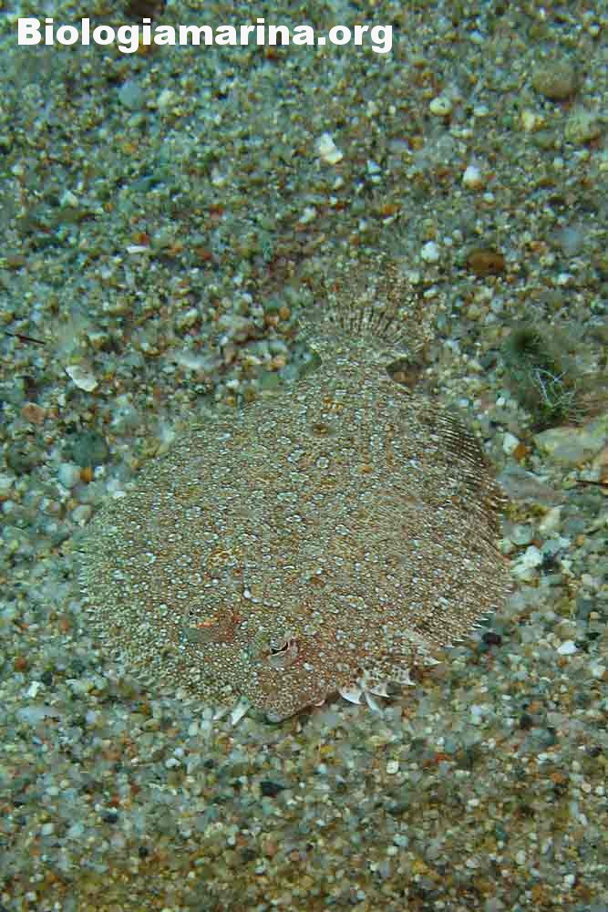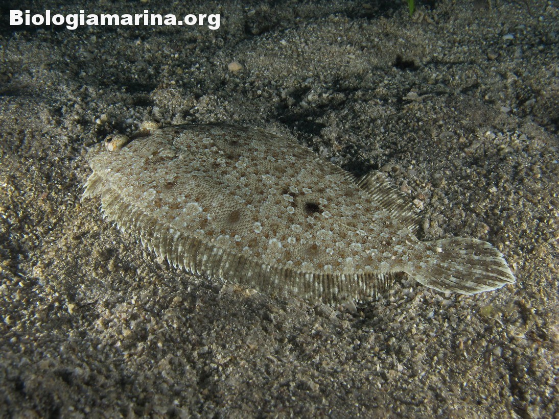 Il rombo di rena é pesce piatto sinistrorso rapidissimo nel nascondersi e mimetizzarsi sotto un sottilissimo strato di sabbia. Sono gli occhi sporgenti come due torrette periscopiche a tradire la sua presenza.