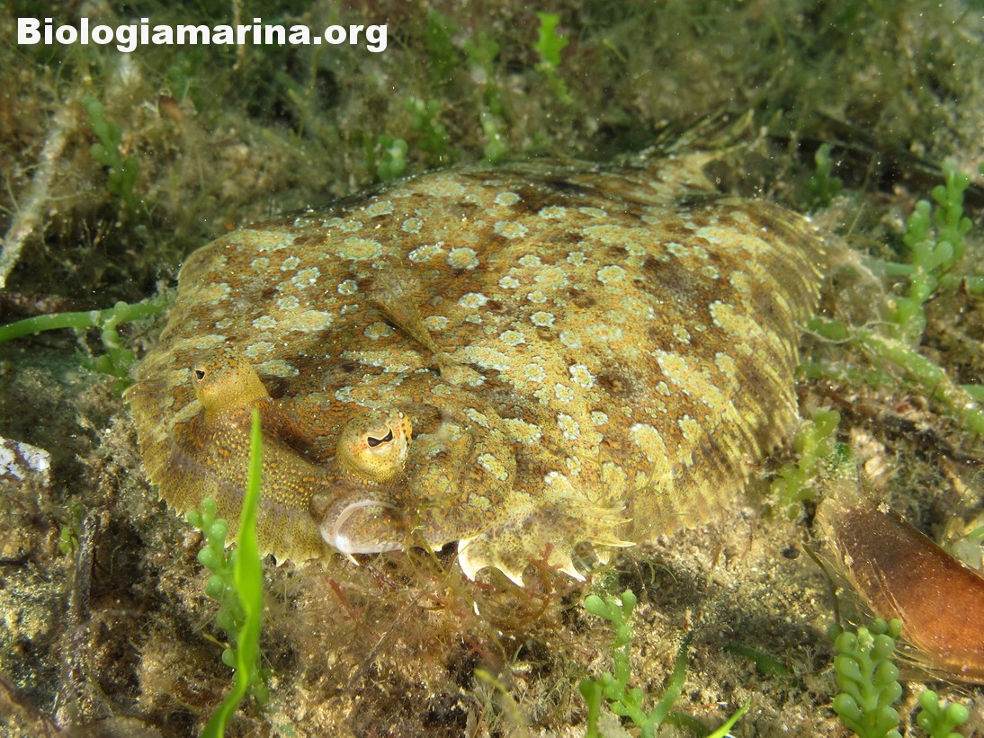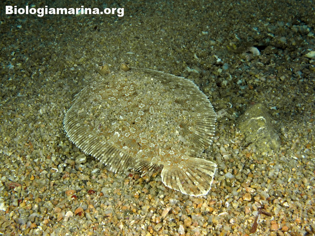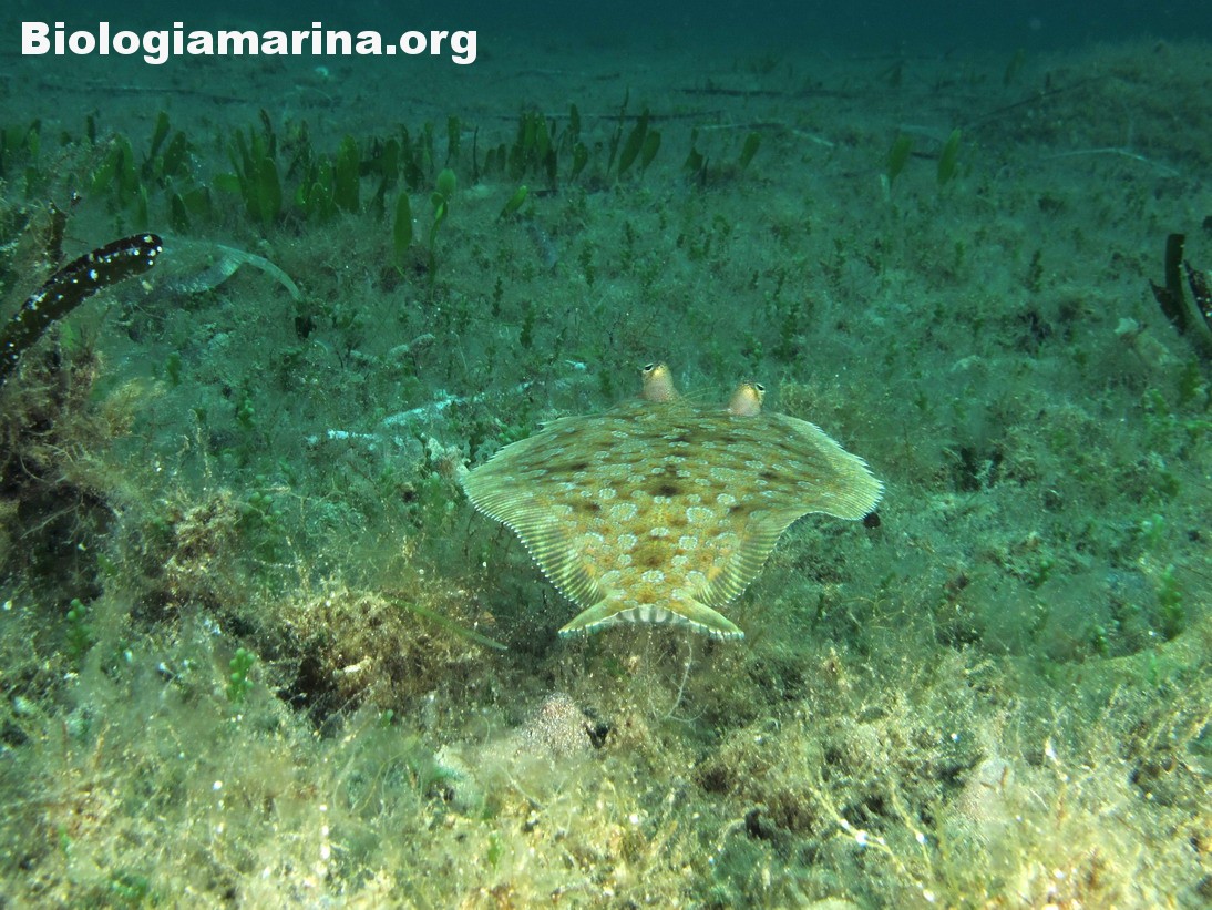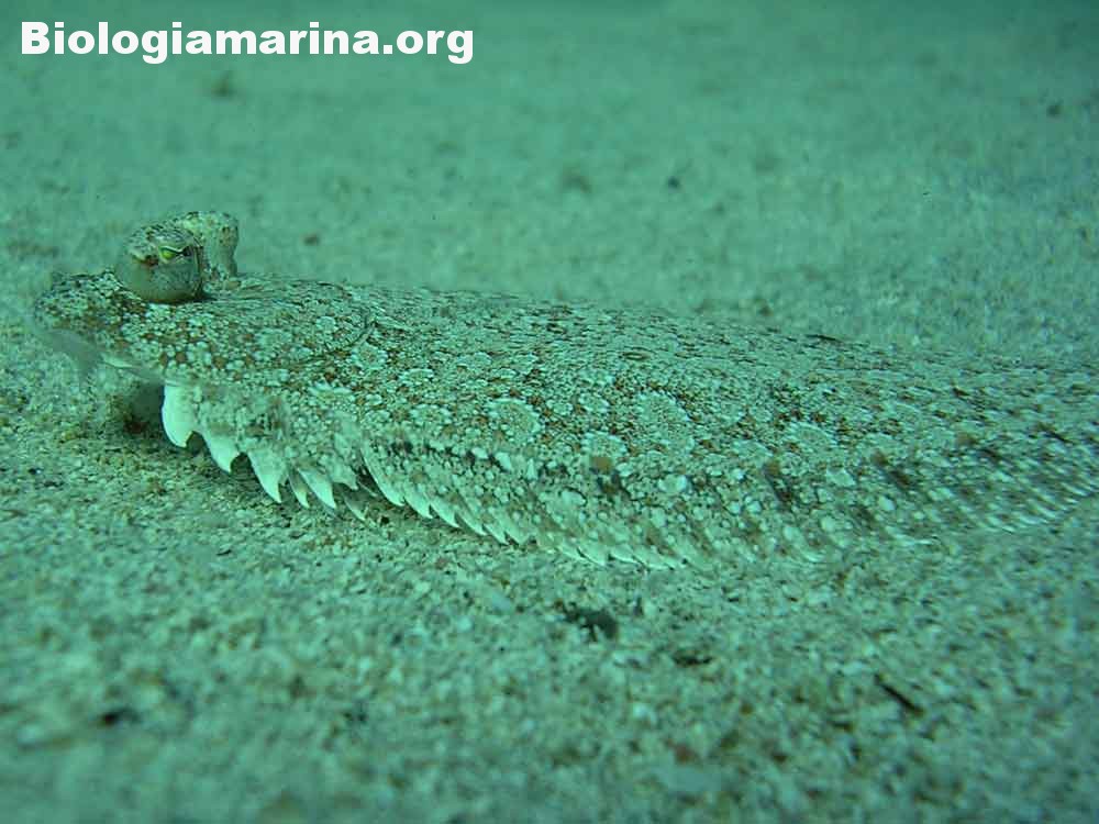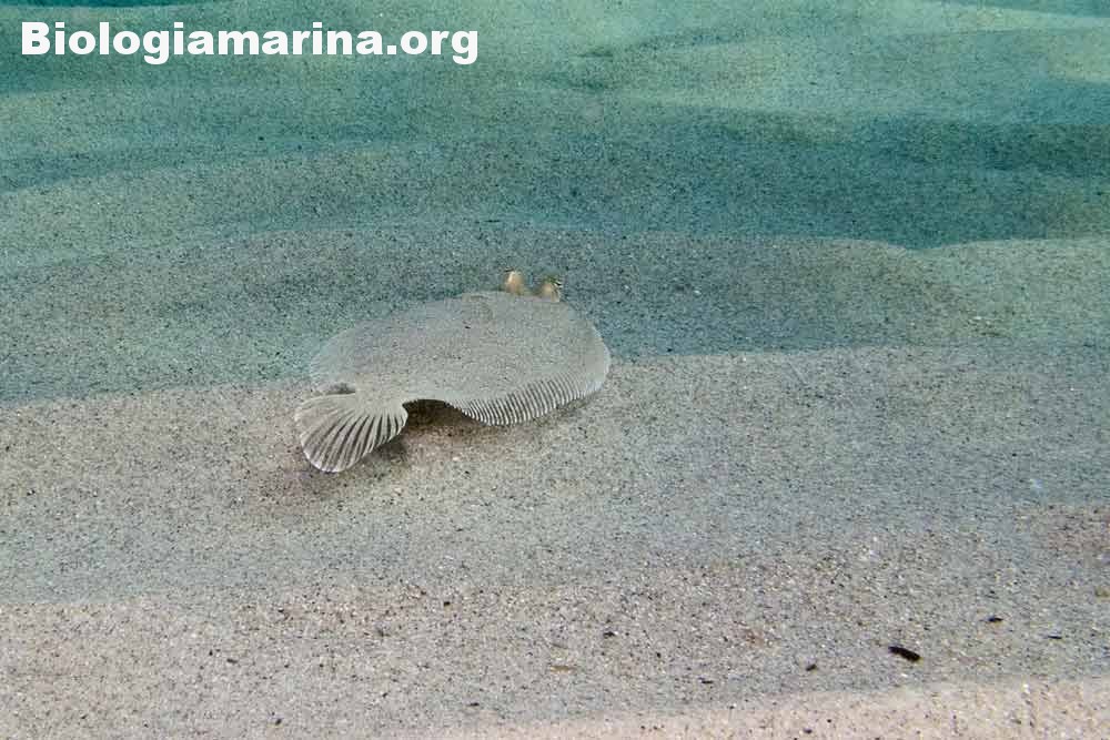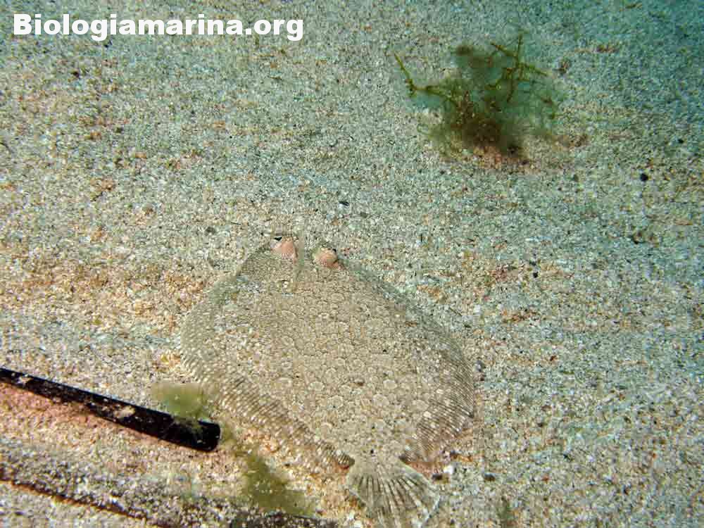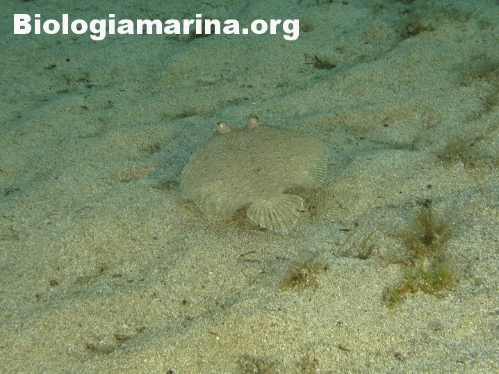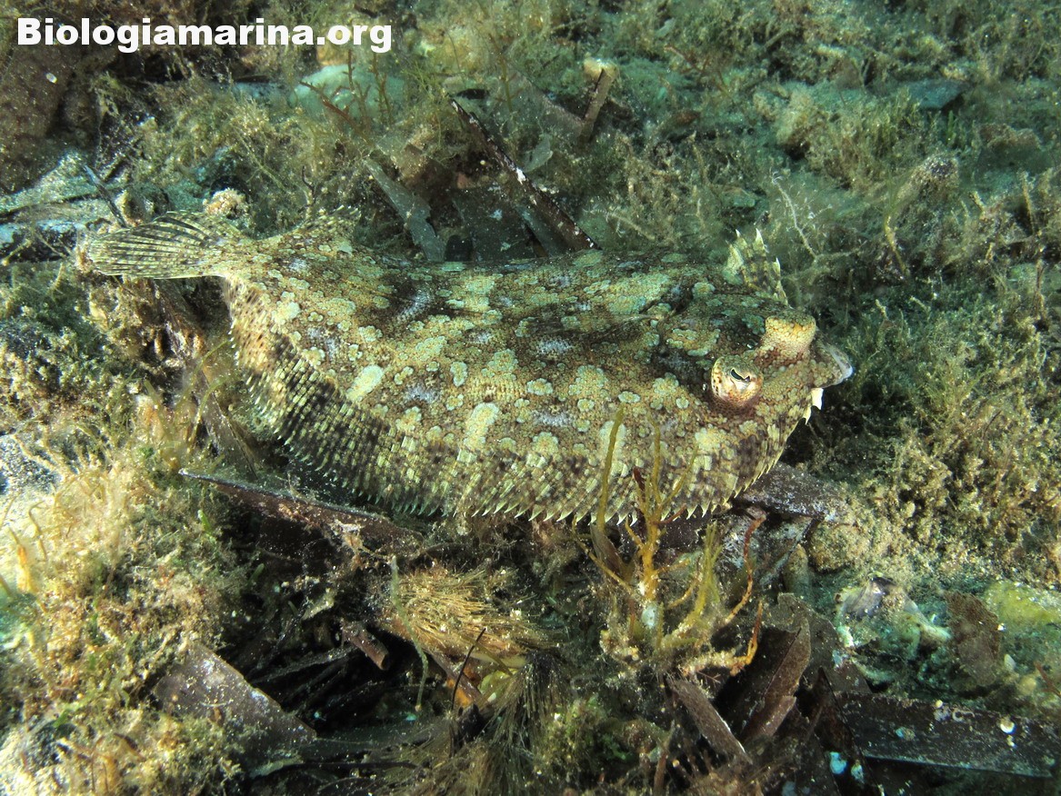 Il rombo di rena é pesce piatto sinistrorso rapidissimo nel nascondersi e mimetizzarsi sotto un sottilissimo strato di sabbia. Sono gli occhi sporgenti come due torrette periscopiche a tradire la sua presenza.