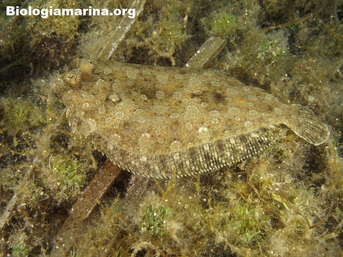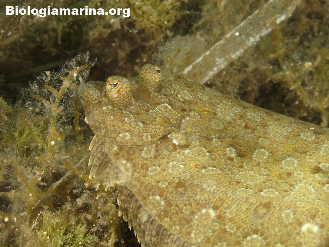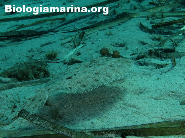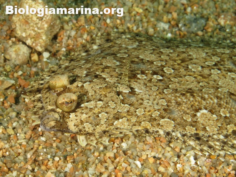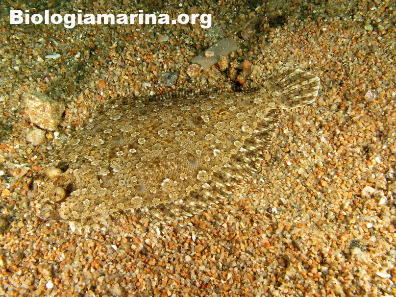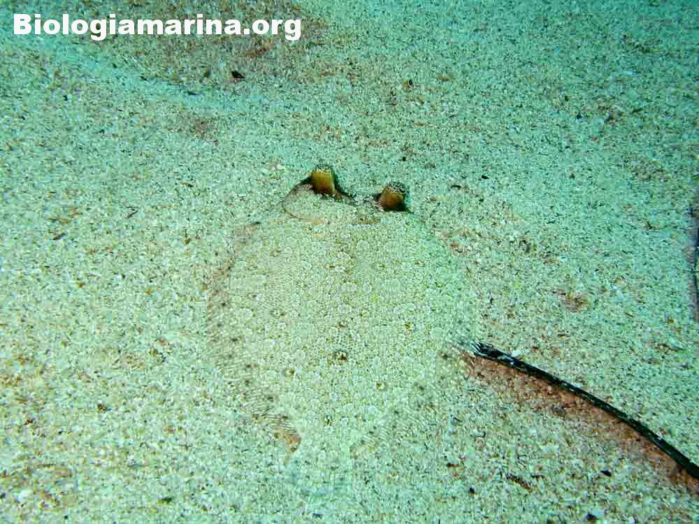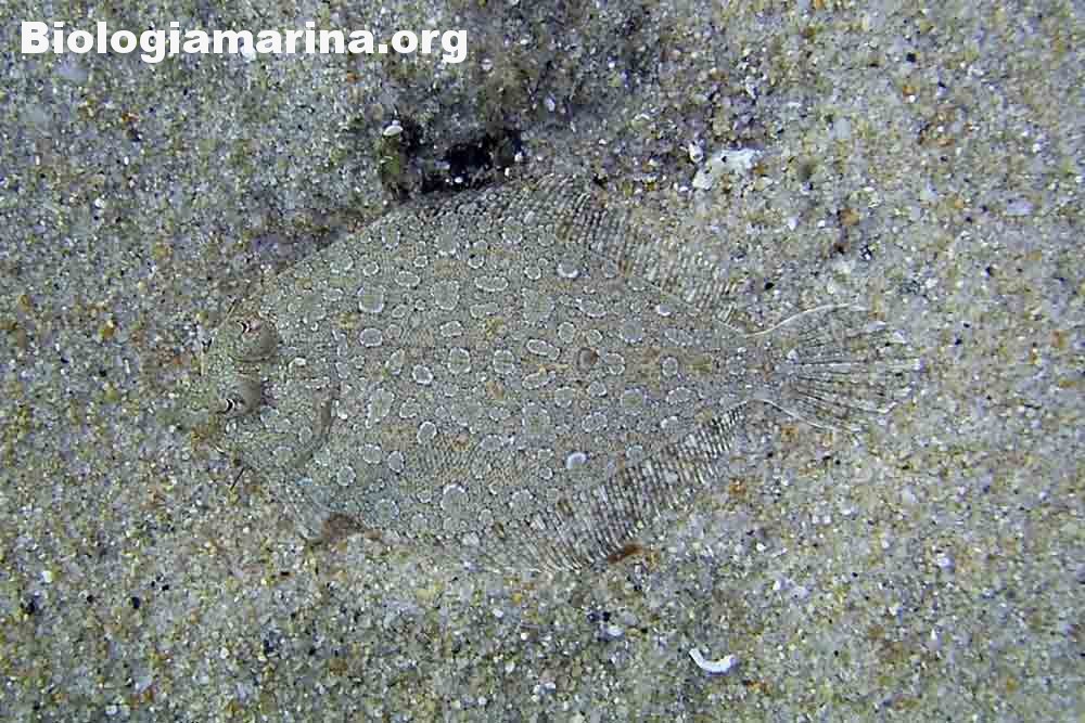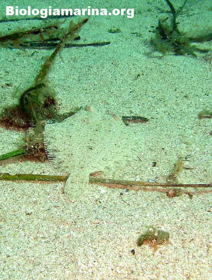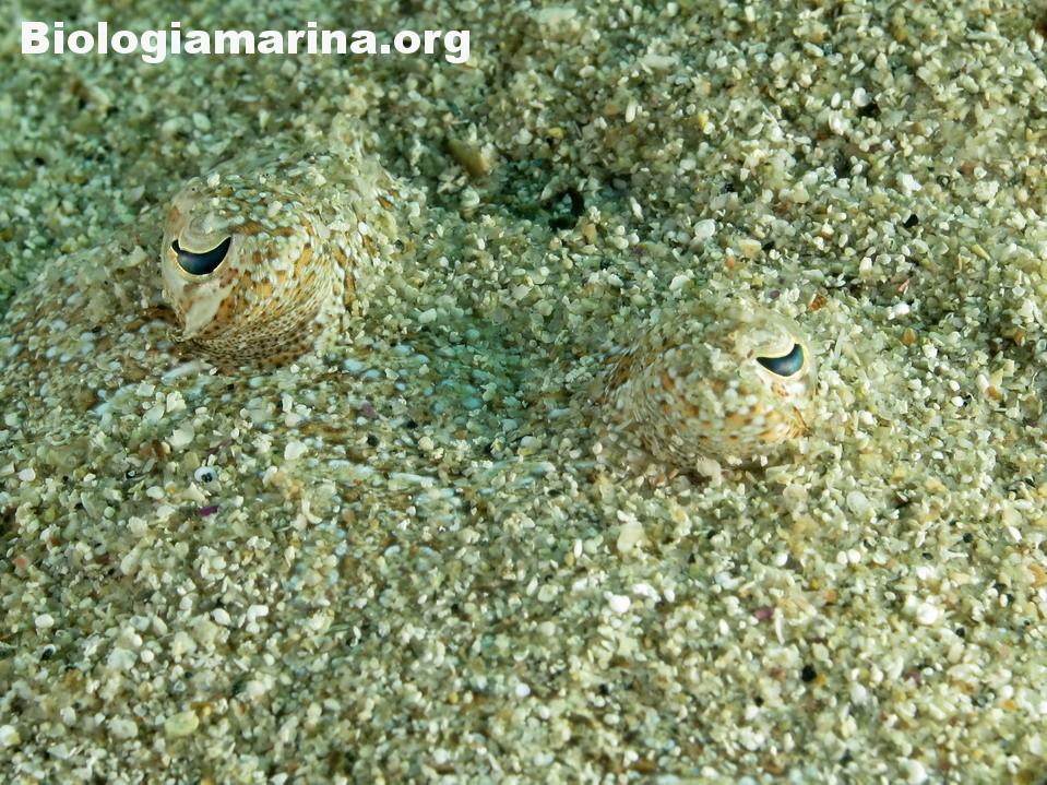 Il rombo di rena é pesce piatto sinistrorso rapidissimo nel nascondersi e mimetizzarsi sotto un sottilissimo strato di sabbia. Sono gli occhi sporgenti come due torrette periscopiche a tradire la sua presenza.