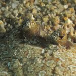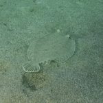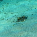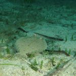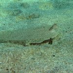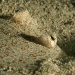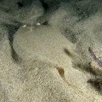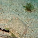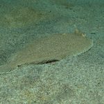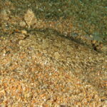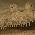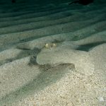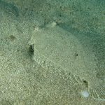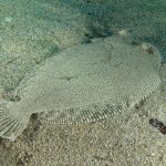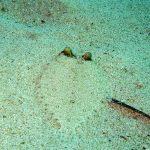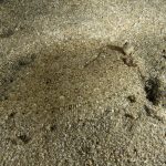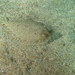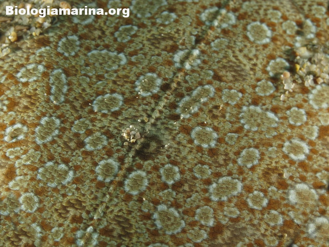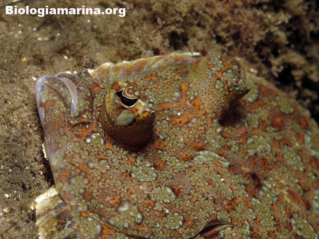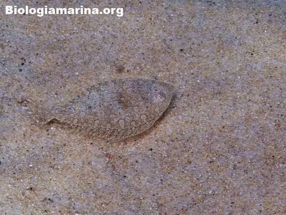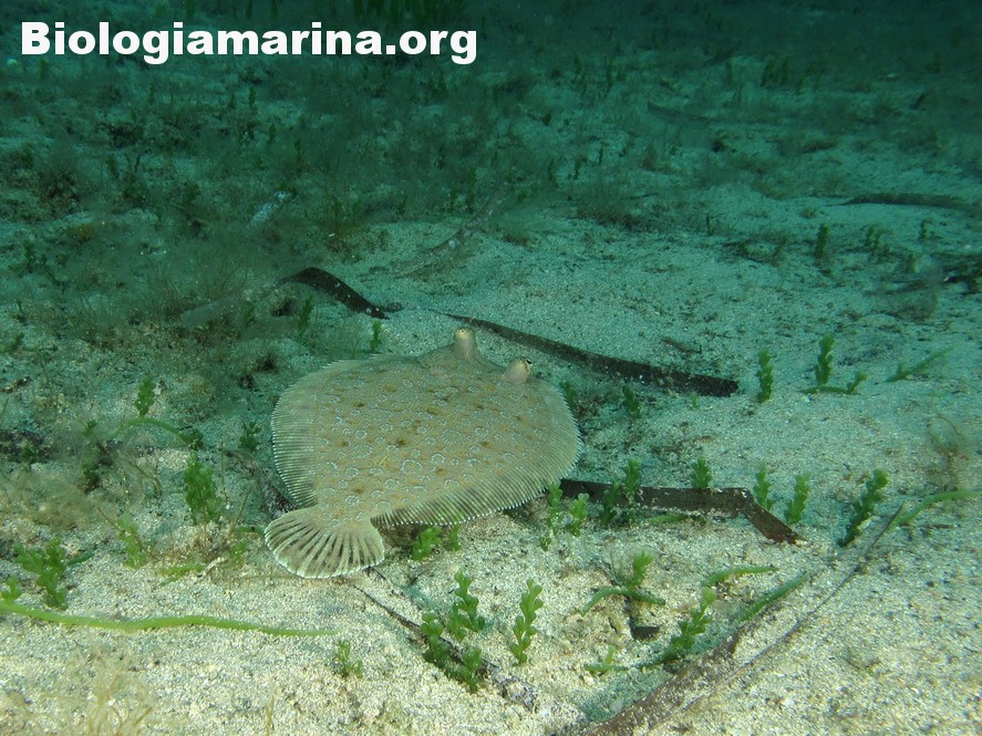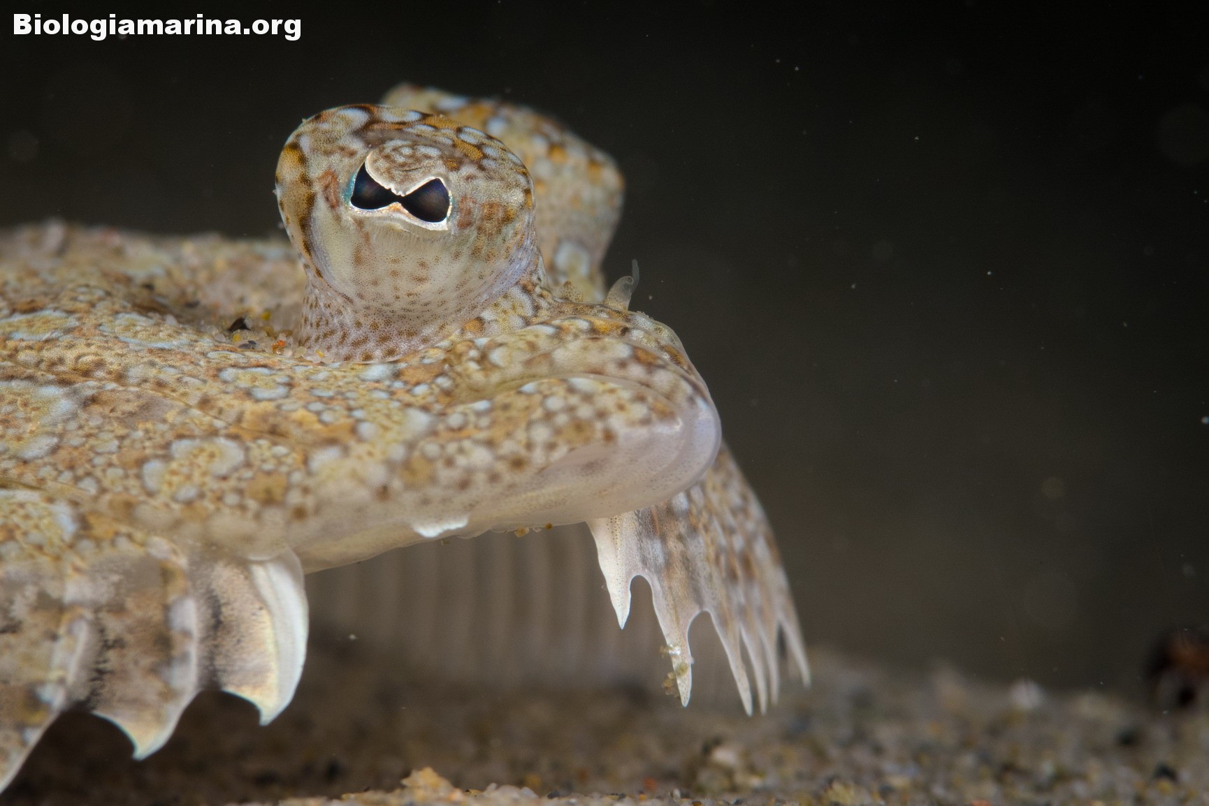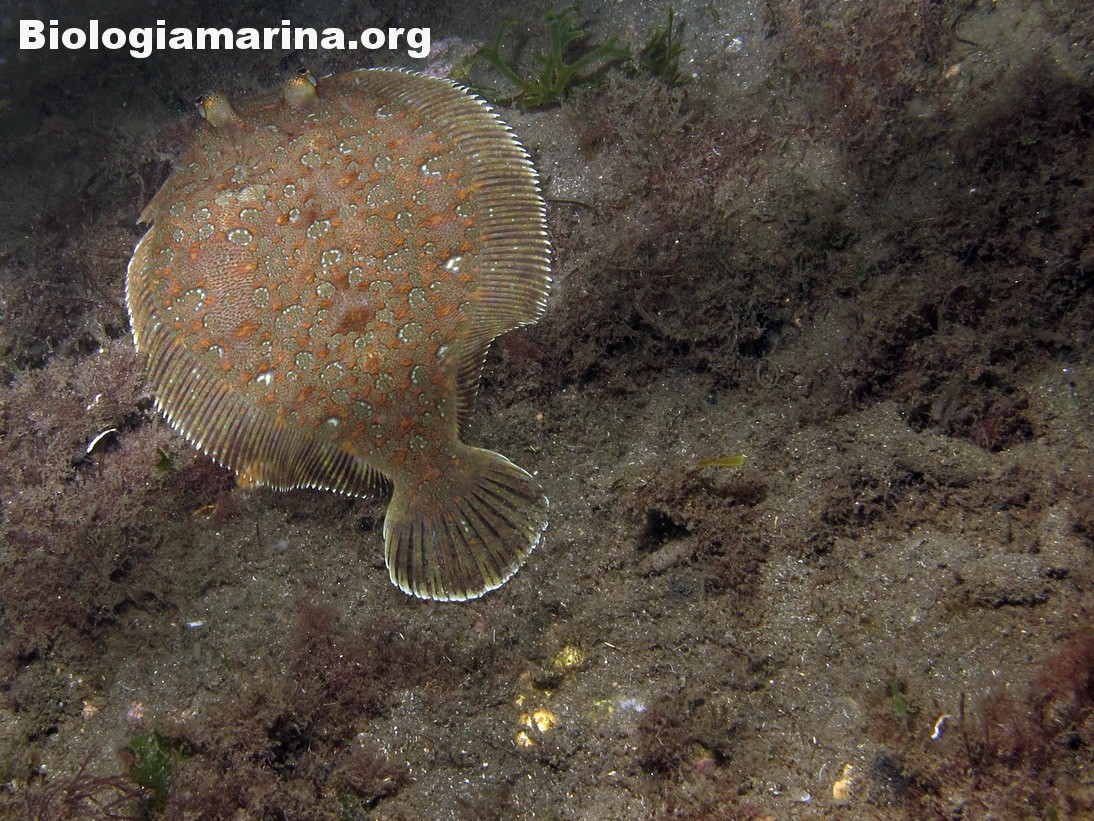 Il rombo di rena é pesce piatto sinistrorso rapidissimo nel nascondersi e mimetizzarsi sotto un sottilissimo strato di sabbia. Sono gli occhi sporgenti come due torrette periscopiche a tradire la sua presenza.