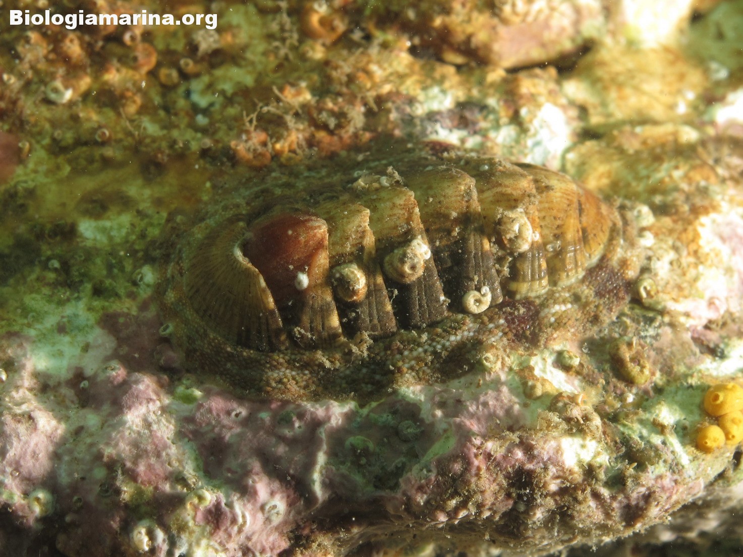 Il chitone oliva appartiene al philum dei Molluschi alla classe dei Poliplacofori.
