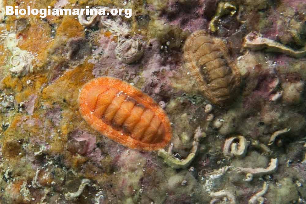 I poliplacofori, meglio conosciuti appunto come chitoni, hanno un corpo appiattito rivestito da uno scudo composto di otto placche che possono essere bordate da scaglie o da setole chitinose. La loro dieta alimentare, prevalentemente a base di alghe diatomee, viene raschiata da una apposita radula posta nella parte inferiore.