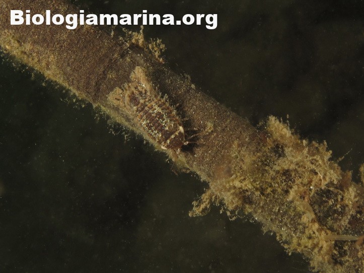 Il cimodoce sp. è un piccolo isopode che si nutre si macroalghe e di detrito organico.