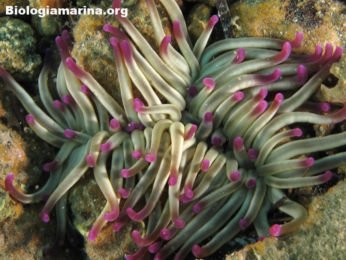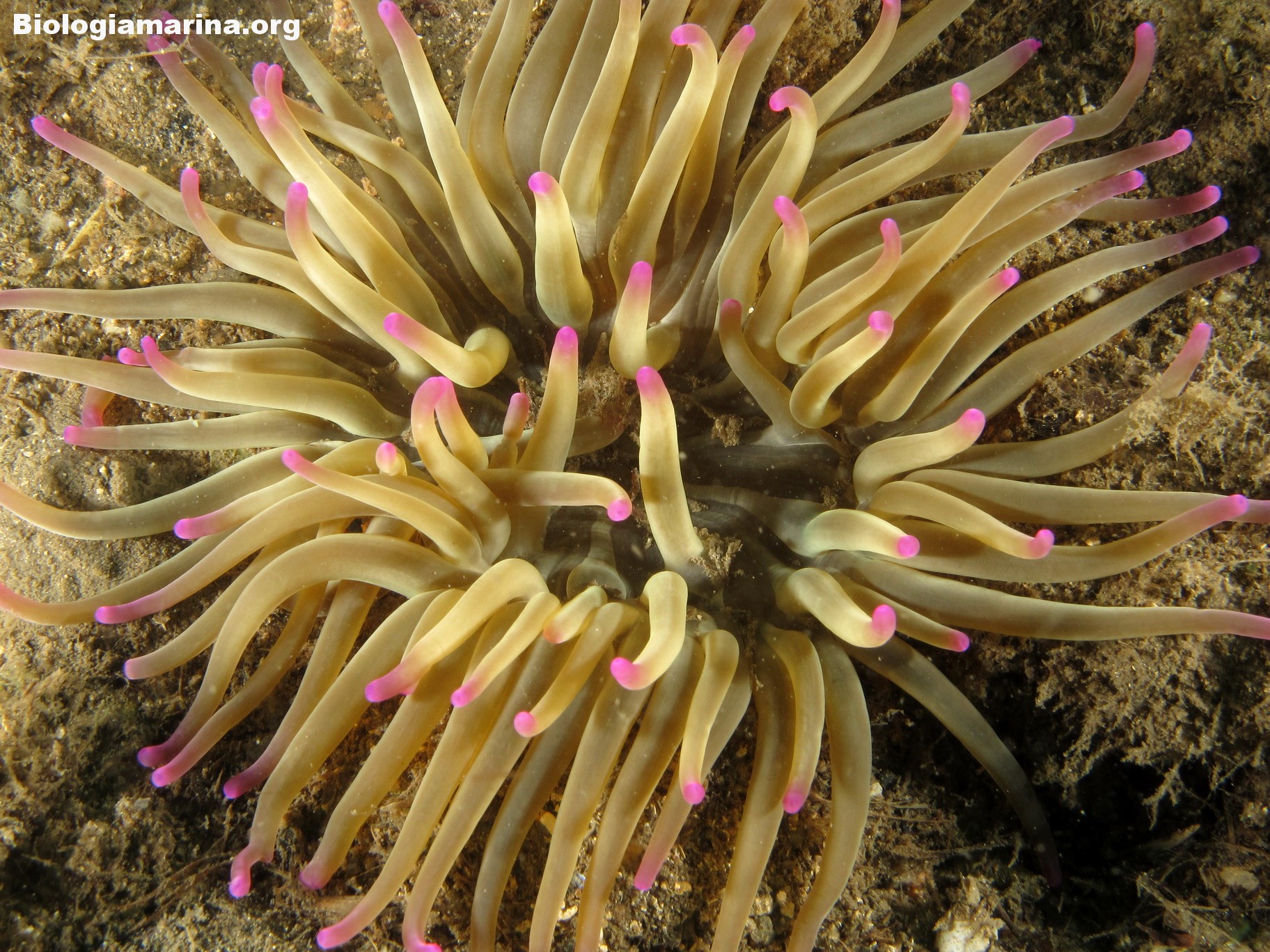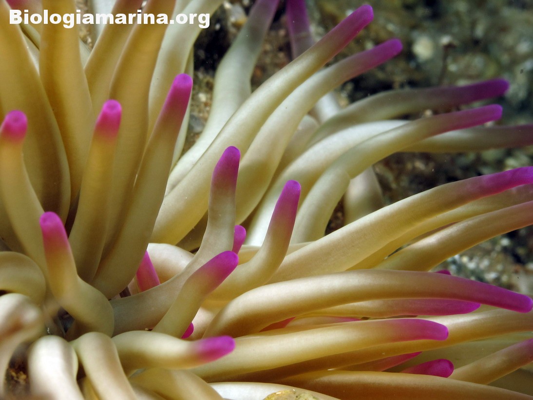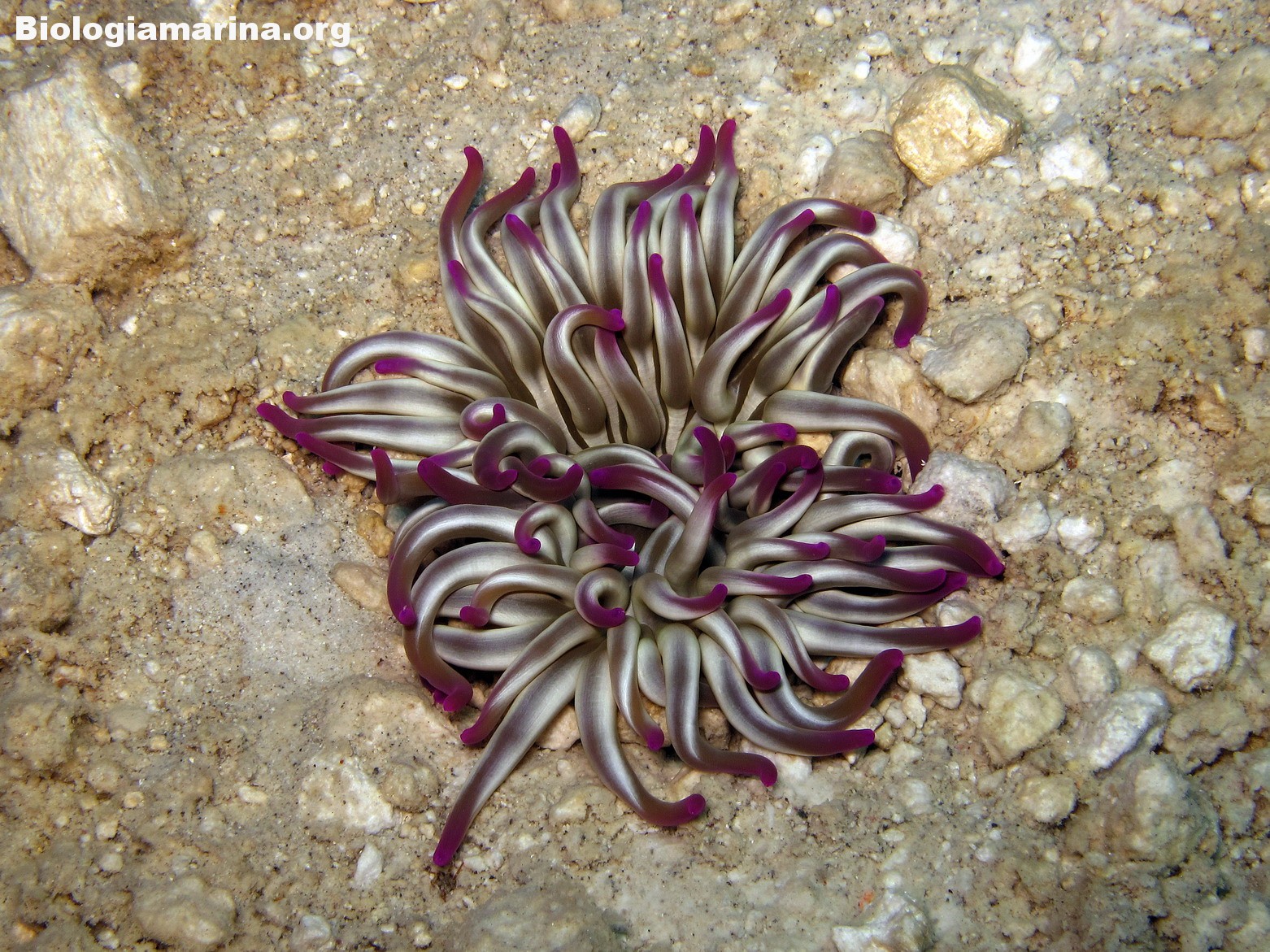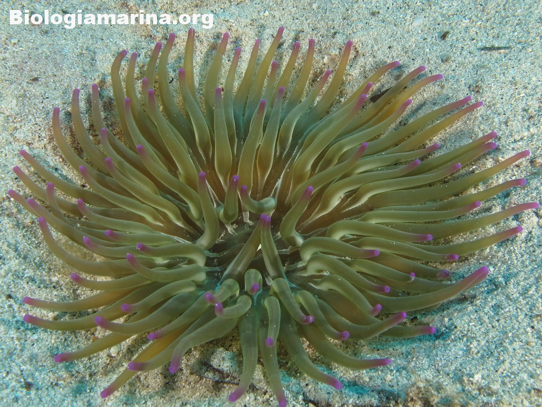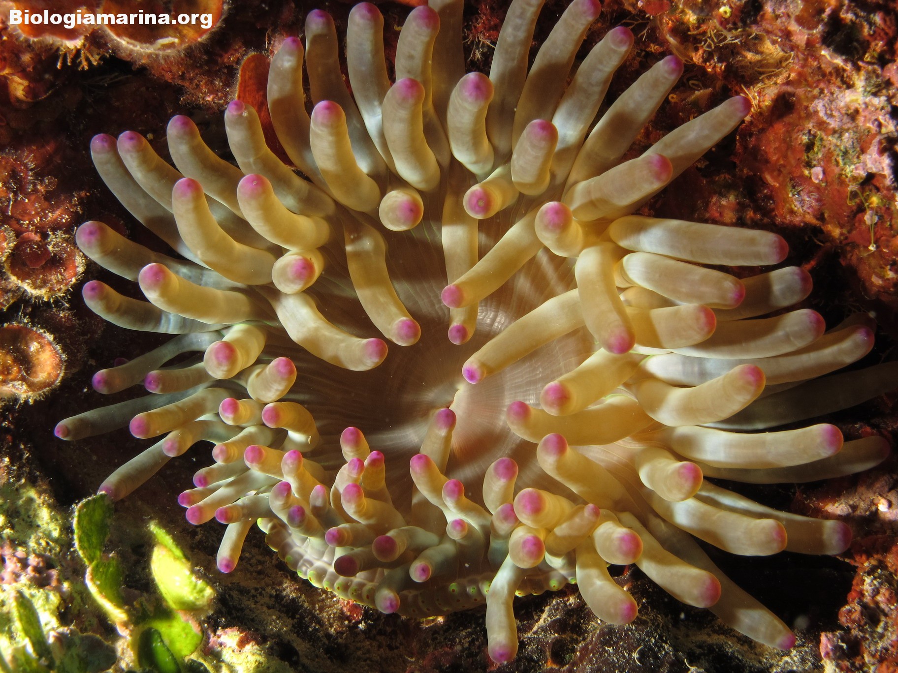 Entriamo nell’ordine degli attiniari, meglio conosciuti come anemoni di mare. Gli attiniari aderiscono al substrato tramite un disco di base. I tentacoli sono urticanti, sono retrattili e in numero svariato da sei a oltre cento. I tentacoli nel contempo convergono il cibo verso la bocca posta al centro . Le attinie sono polipi solitari fissati, per quanto non indissolubilmente al substrato, sprovvisti di scheletro proprio, come in tutti gli attiniari. Siamo certi che le immagini, meglio delle parole, daranno l’esatta idea dell’animale.