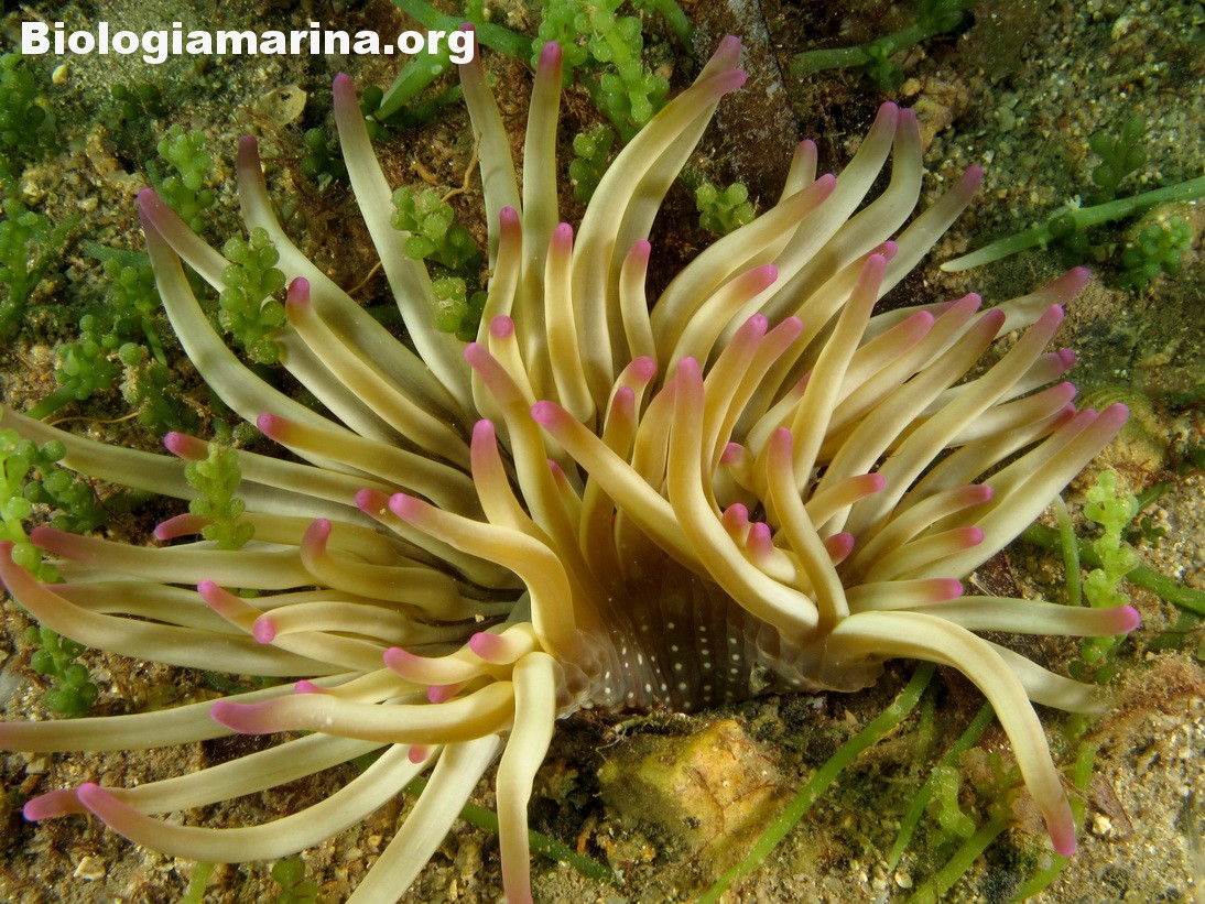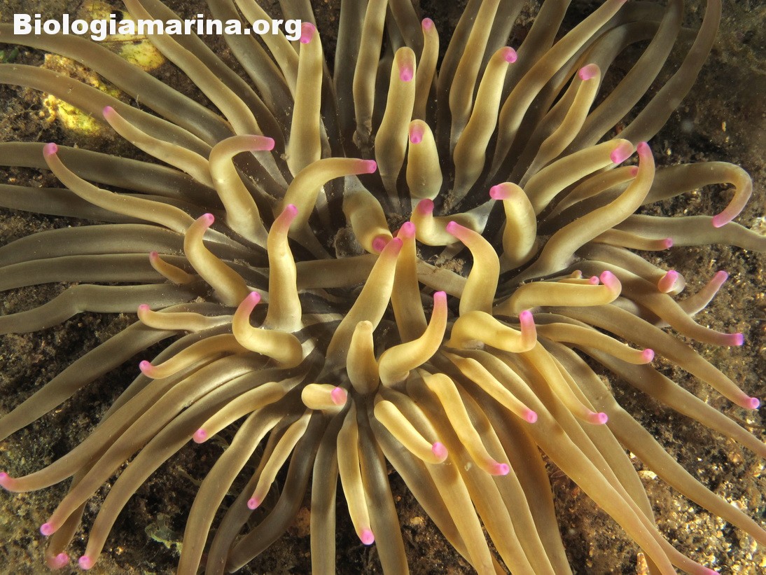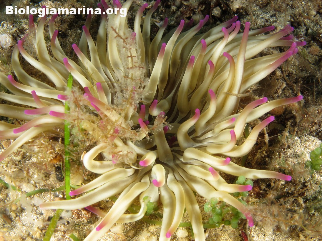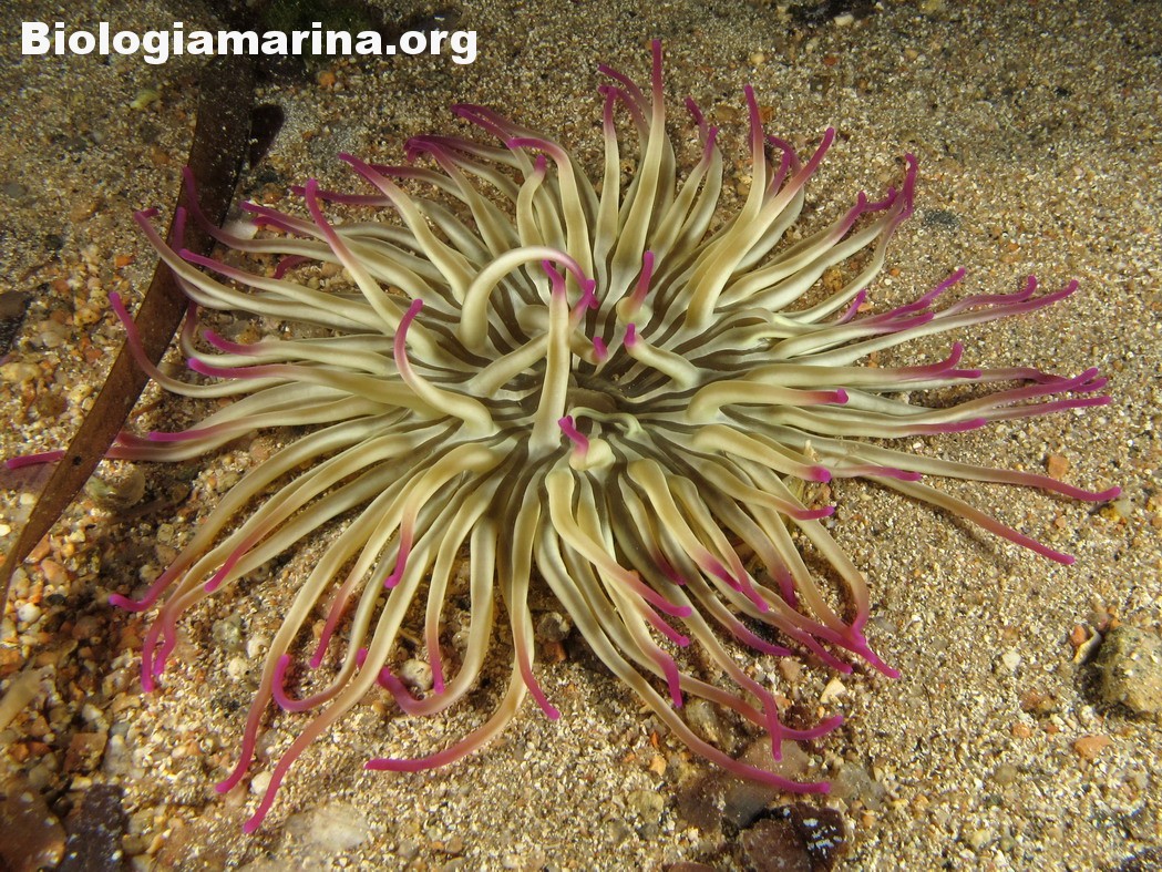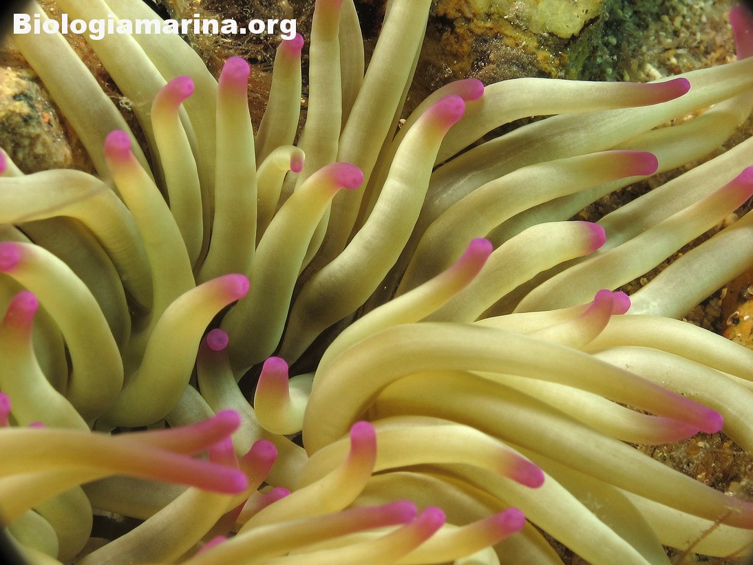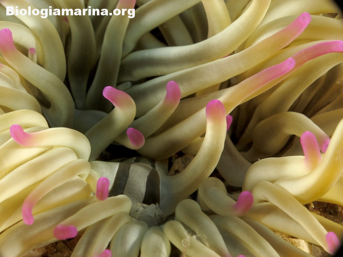 Entriamo nell’ordine degli attiniari, meglio conosciuti come anemoni di mare. Gli attiniari aderiscono al substrato tramite un disco di base. I tentacoli sono urticanti, sono retrattili e in numero svariato da sei a oltre cento. I tentacoli nel contempo convergono il cibo verso la bocca posta al centro . Le attinie sono polipi solitari fissati, per quanto non indissolubilmente al substrato, sprovvisti di scheletro proprio, come in tutti gli attiniari. Siamo certi che le immagini, meglio delle parole, daranno l’esatta idea dell’animale.