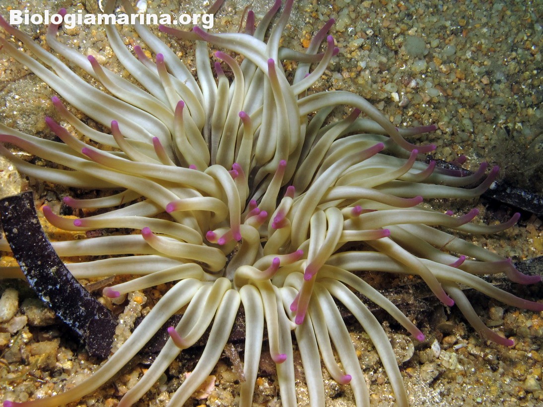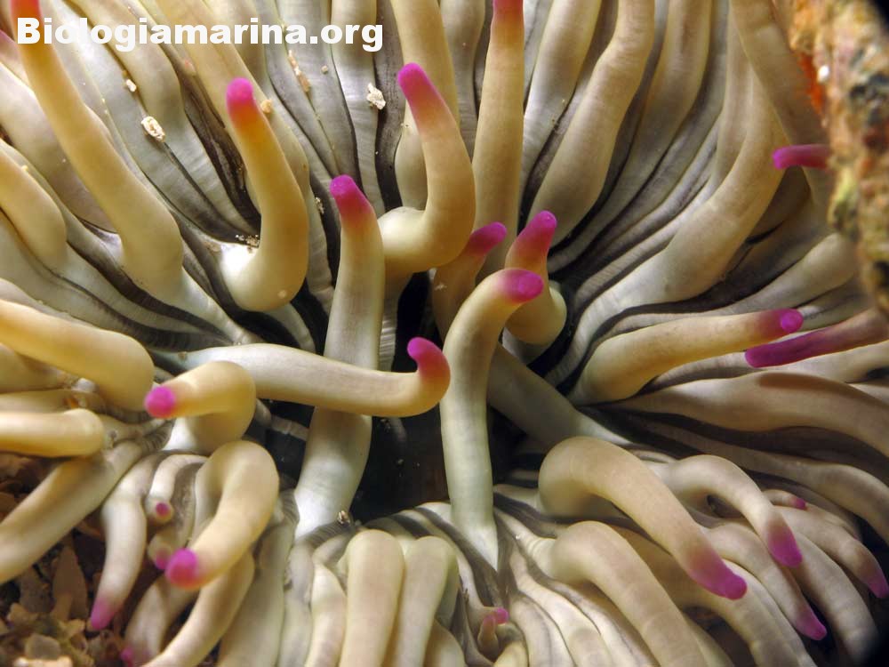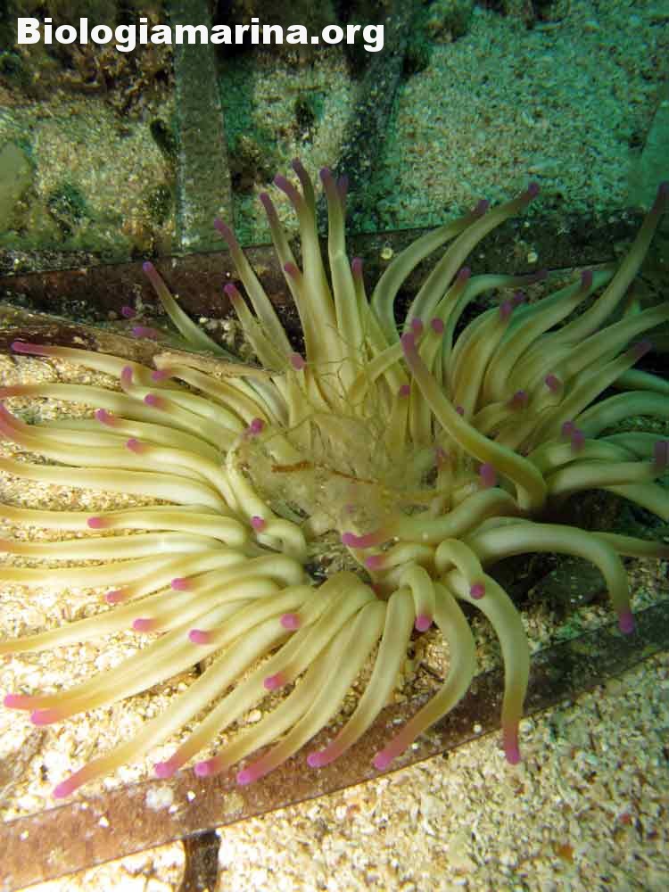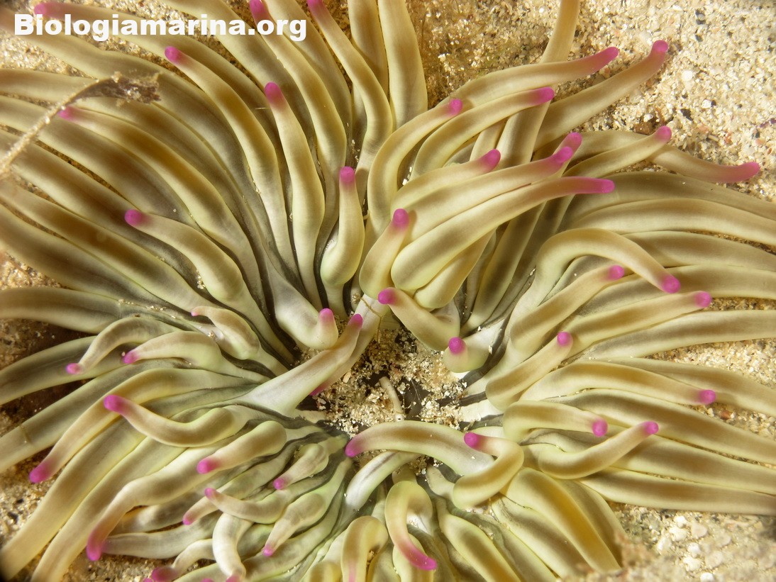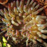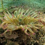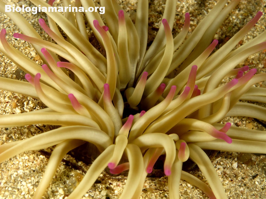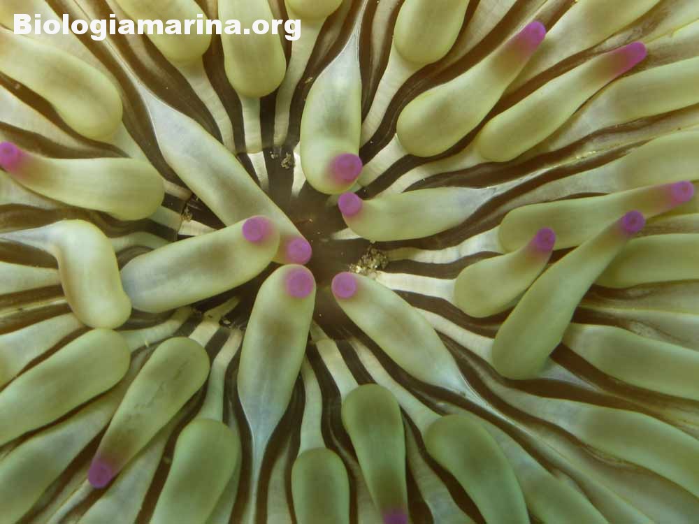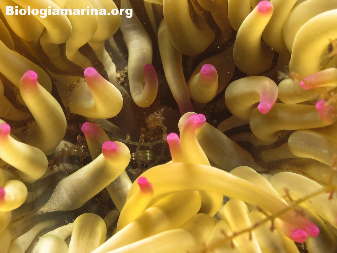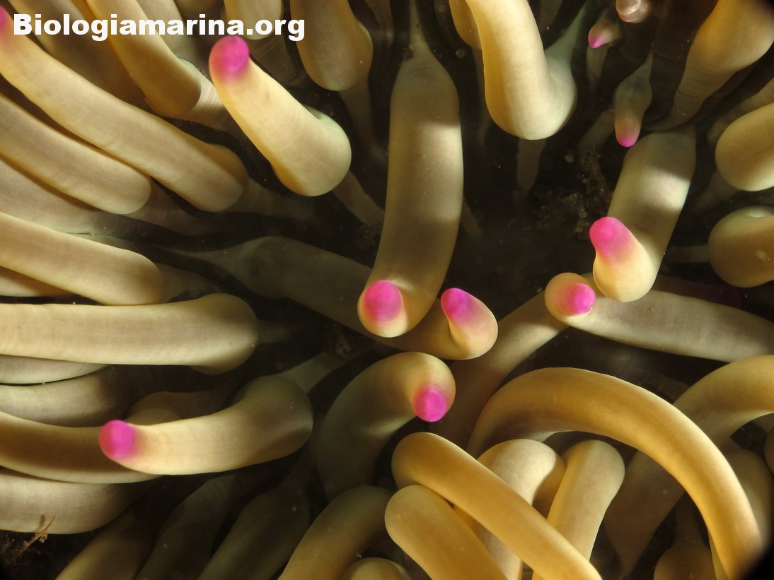Entriamo nell’ordine degli attiniari, meglio conosciuti come anemoni di mare. Gli attiniari aderiscono al substrato tramite un disco di base. I tentacoli sono urticanti, sono retrattili e in numero svariato da sei a oltre cento. I tentacoli nel contempo convergono il cibo verso la bocca posta al centro . Le attinie sono polipi solitari fissati, per quanto non indissolubilmente al substrato, sprovvisti di scheletro proprio, come in tutti gli attiniari. Siamo certi che le immagini, meglio delle parole, daranno l’esatta idea dell’animale.