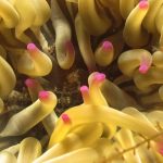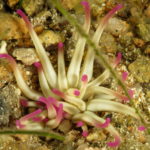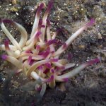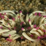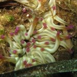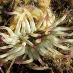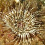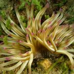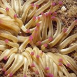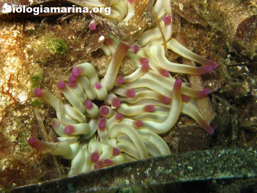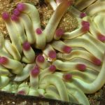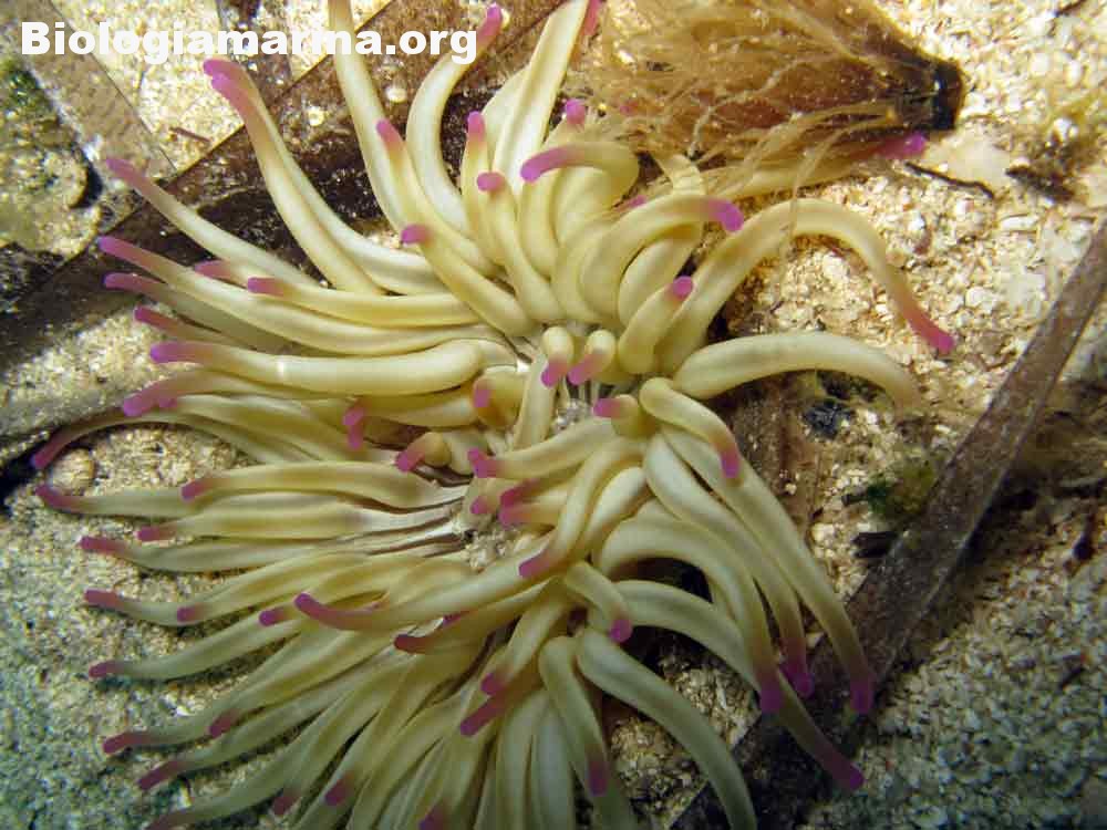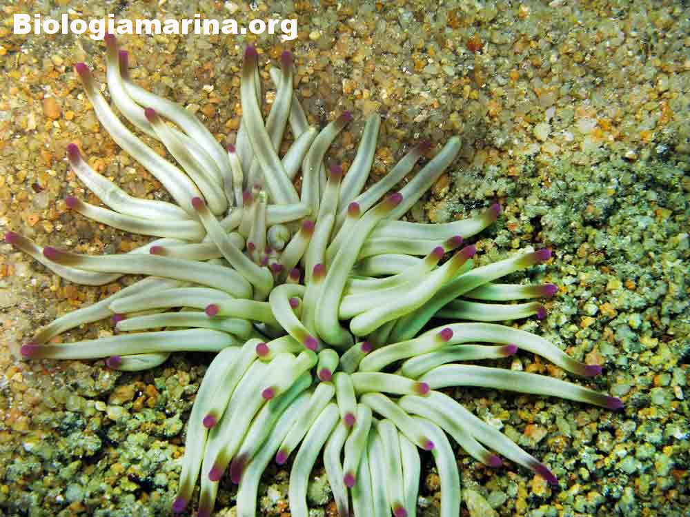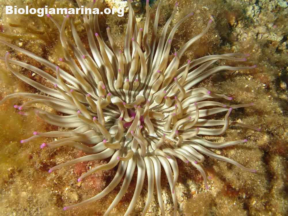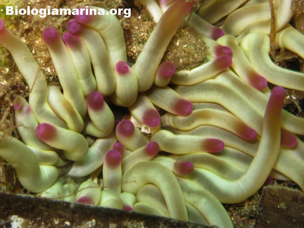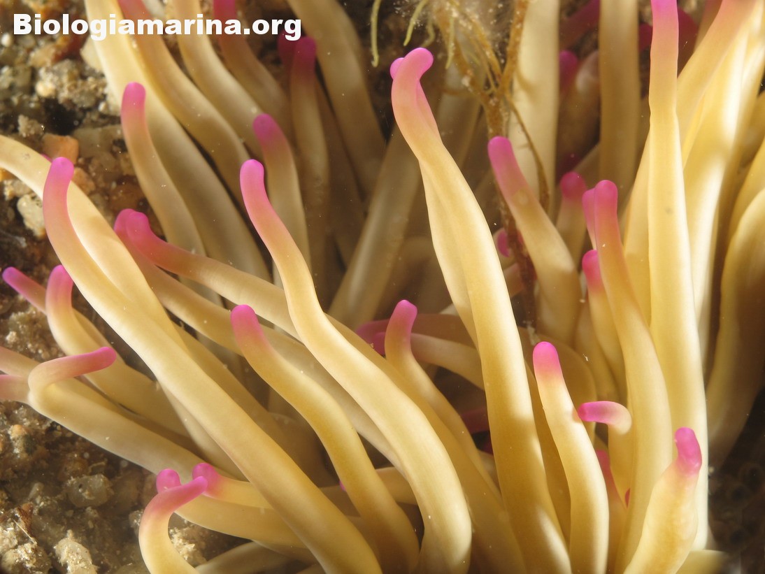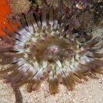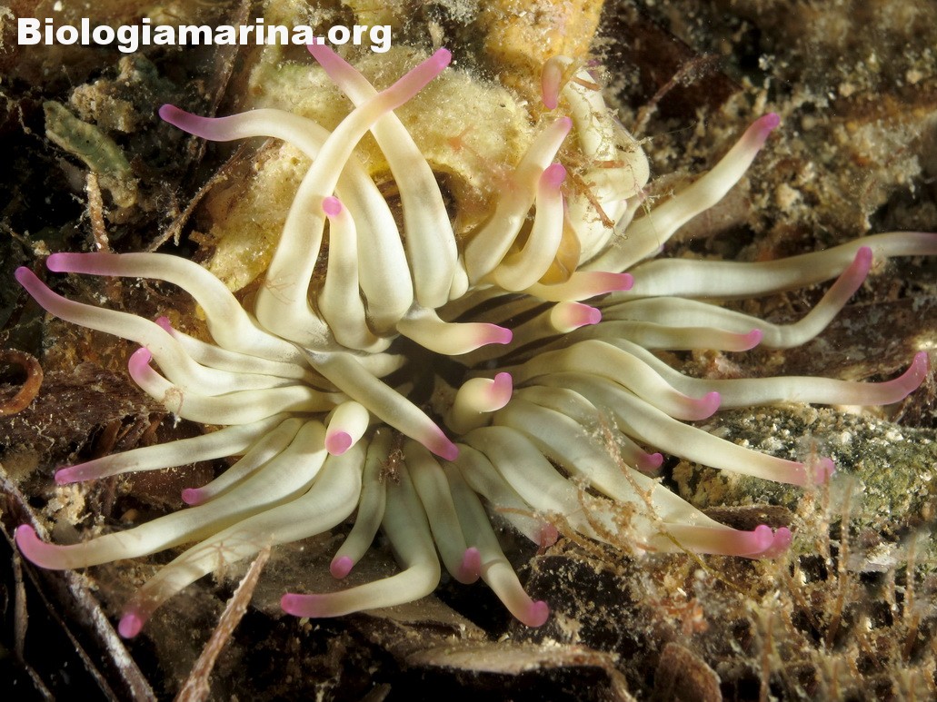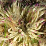 Entriamo nell’ordine degli attiniari, meglio conosciuti come anemoni di mare. Gli attiniari aderiscono al substrato tramite un disco di base. I tentacoli sono urticanti, sono retrattili e in numero svariato da sei a oltre cento. I tentacoli nel contempo convergono il cibo verso la bocca posta al centro . Le attinie sono polipi solitari fissati, per quanto non indissolubilmente al substrato, sprovvisti di scheletro proprio, come in tutti gli attiniari. Siamo certi che le immagini, meglio delle parole, daranno l’esatta idea dell’animale.