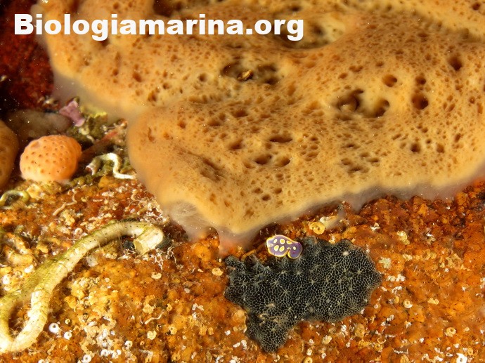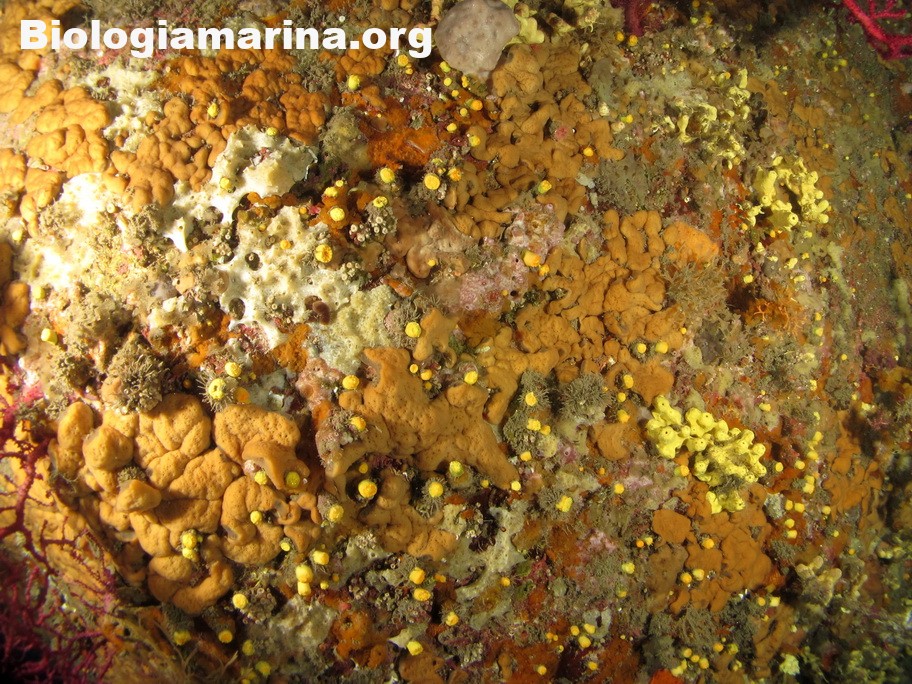 :Spugne calcareecon struttura ascon, sycon o leucon, di piccole dimensioni e frequenti a basse profondità.