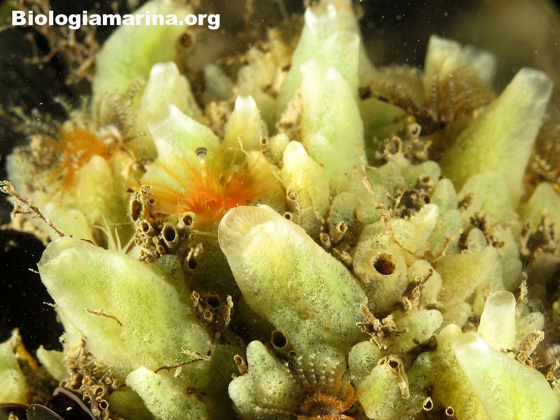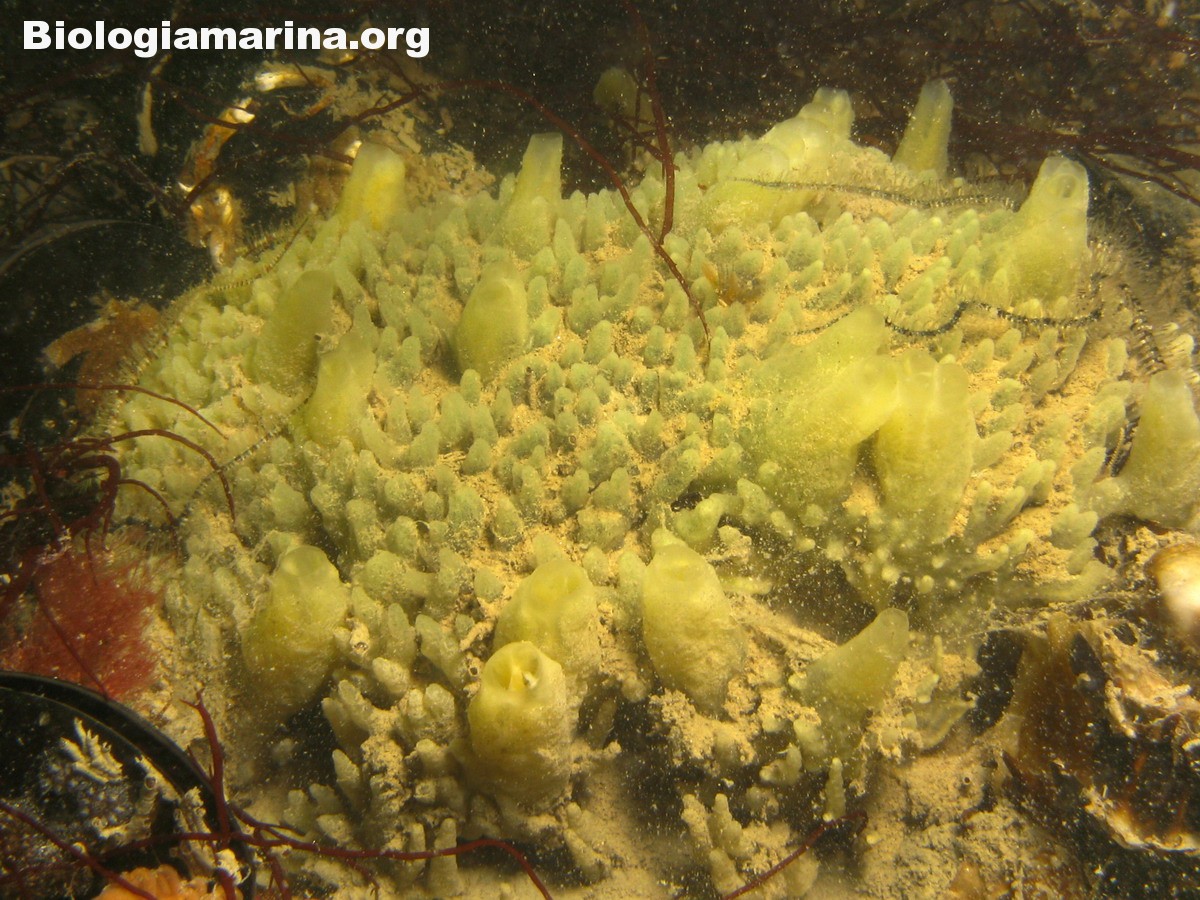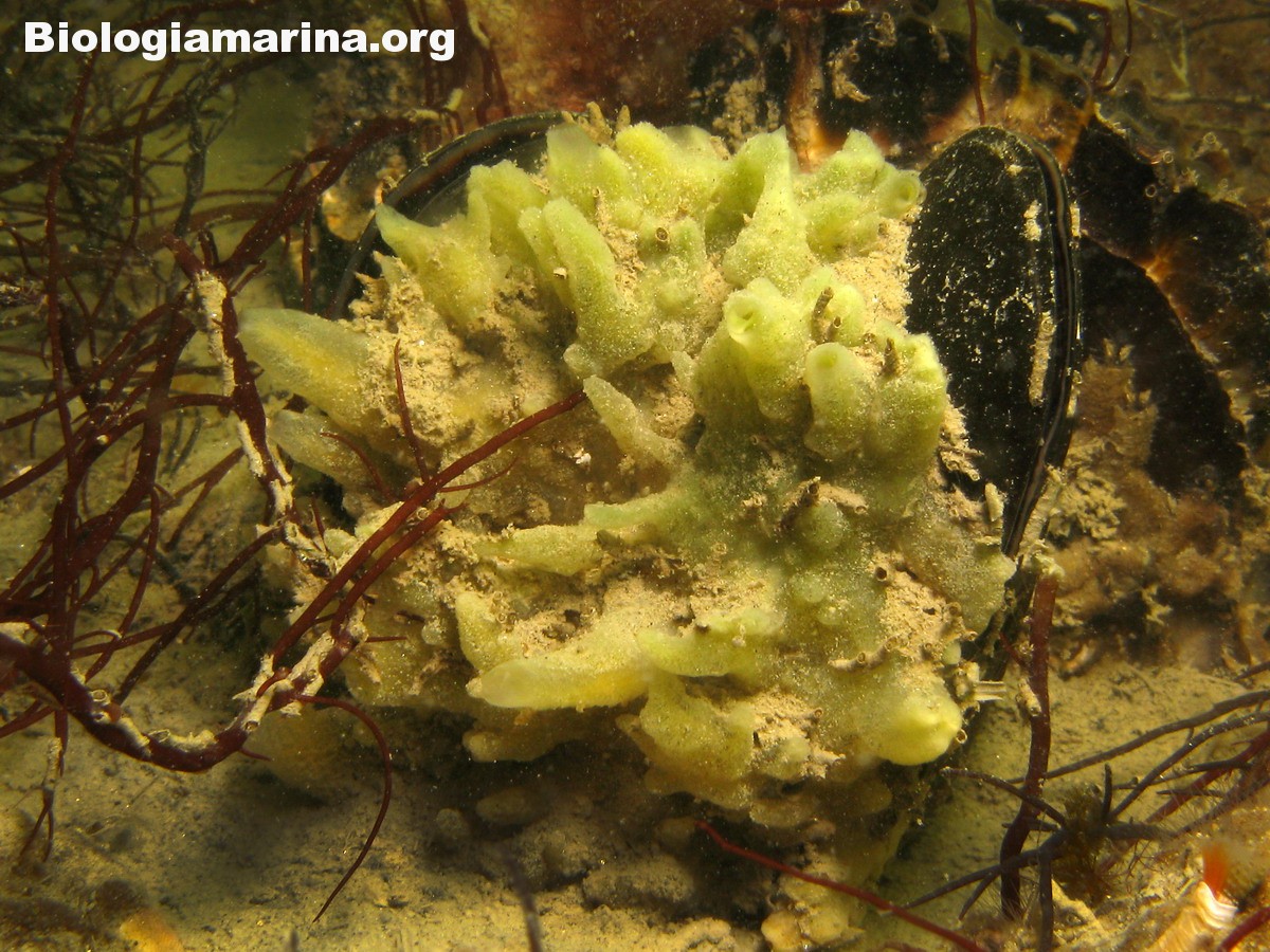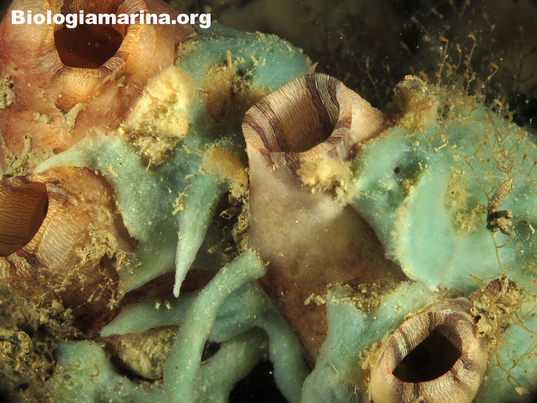 La spugna alicondria pur assumendo a volte forme piatte incrostanti,di norma si presenta in tubuli corti con tonalità di colore che si avvicinano al verde e osculi ben evidenti.