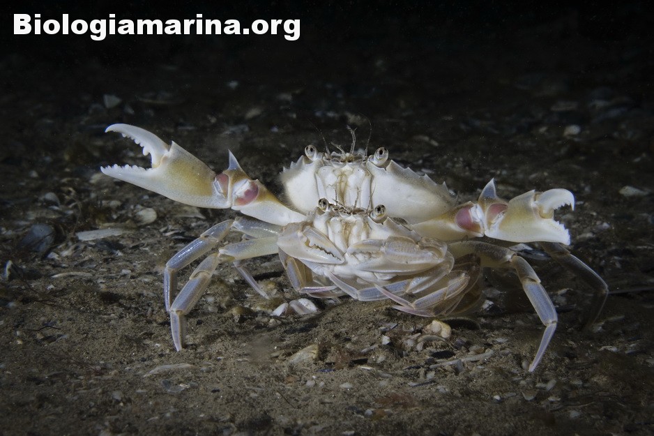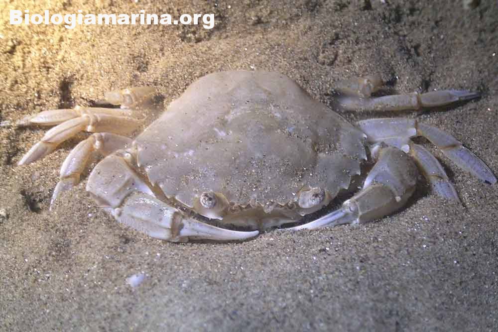 Il granchio di sabbia, assieme al cugino comune, è assiduo frequentatore di fondali sabbiosi. Il granchio di sabbia si contraddistingue dai cugini per possedere nella coppia posteriore degli arti due articolazioni piatte a paletta, a mo’ di pala di remo. Queste articolazioni permettono al granchio tratti di nuoto. Se disturbato, con repentini movimenti degli arti si insabbia.