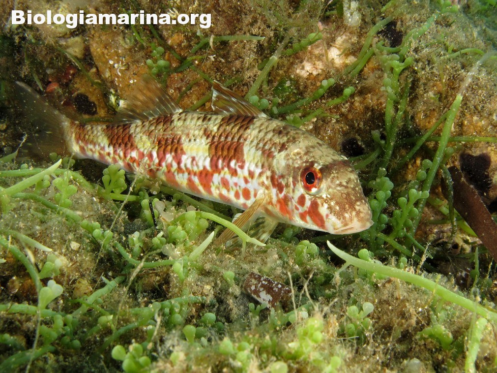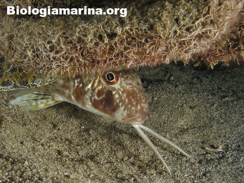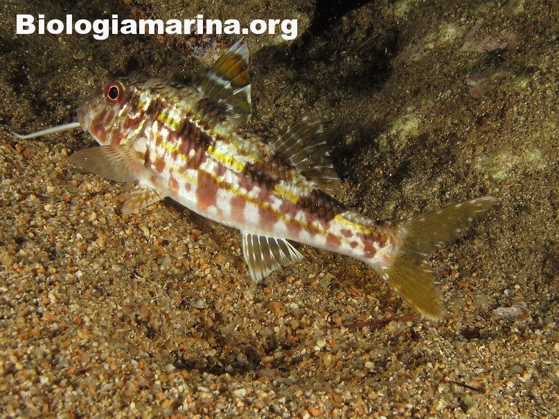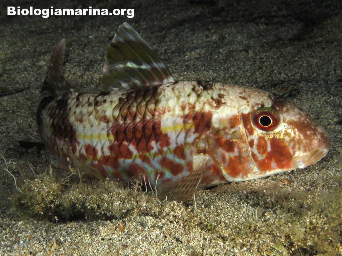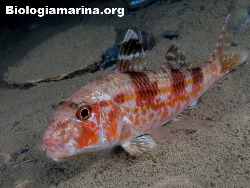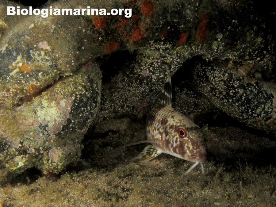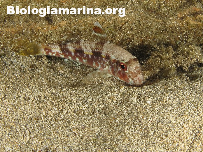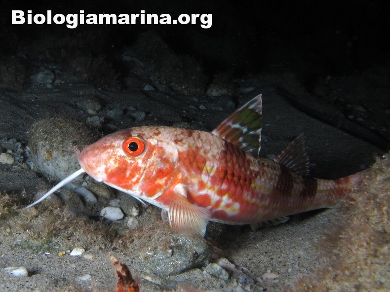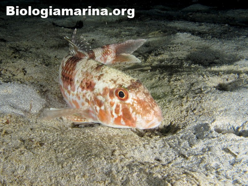 La triglia di scoglio si differenzia dalla triglia da fango per la fronte meno ripida e per la pinna dorsale qui colorata. La triglia di scoglio sarà sicuramente compagna di tante nostre immersioni in basso e medio fondale. Potremo notarla rovistare freneticamente  nel substrato roteando con i due barbigli tattili alla ricerca di cibo (piccoli crostacei, piccoli molluschi o piccoli anellidi). Durante la sua opera di (fresatura) del substrato la vedremo accompagnata  da tordi, donzelle e saraghi, pronti ad approfittare della messa a nudo di tante piccole prede.