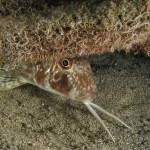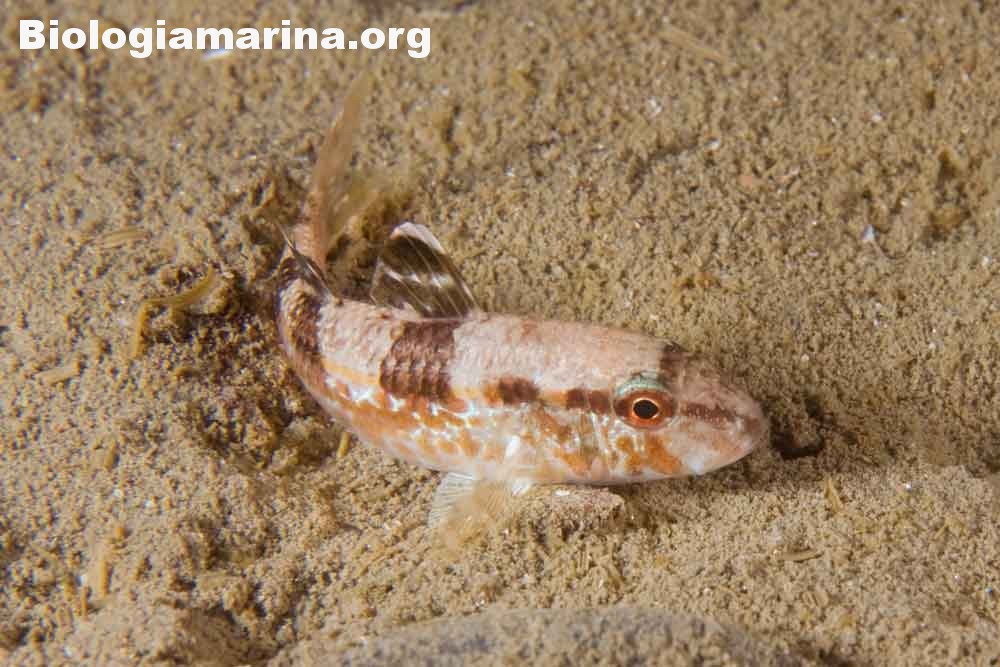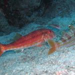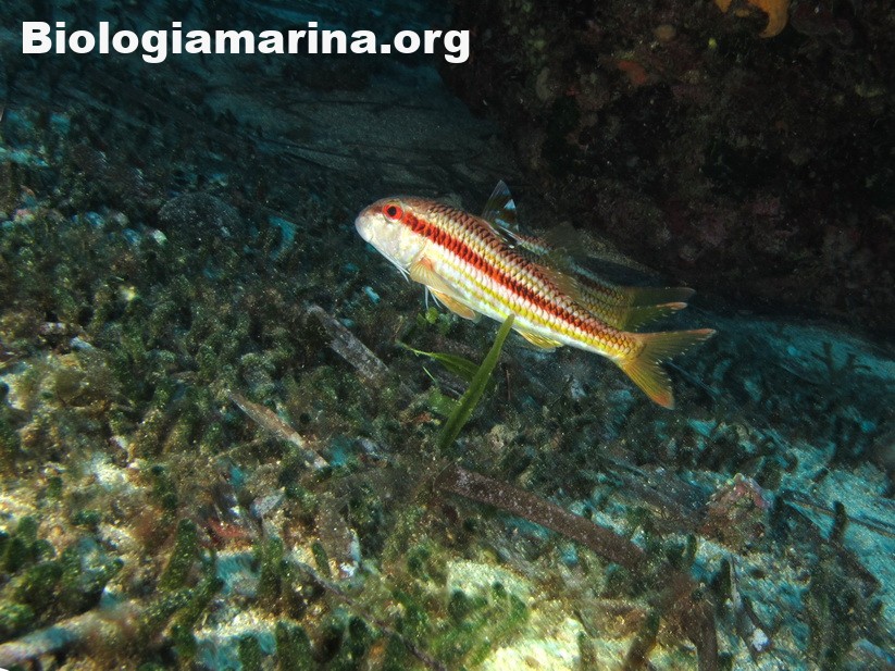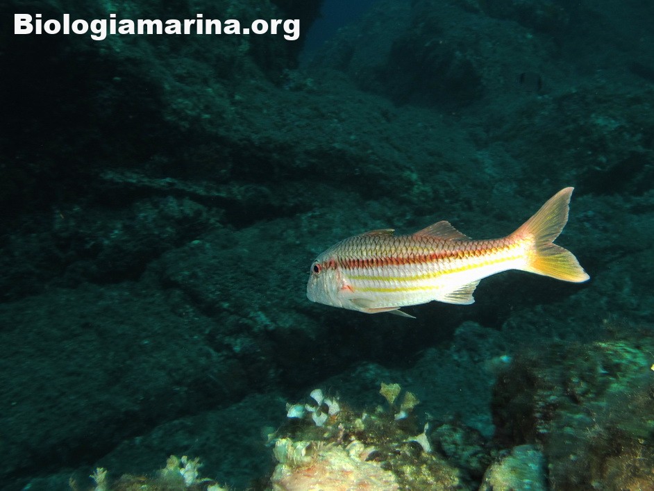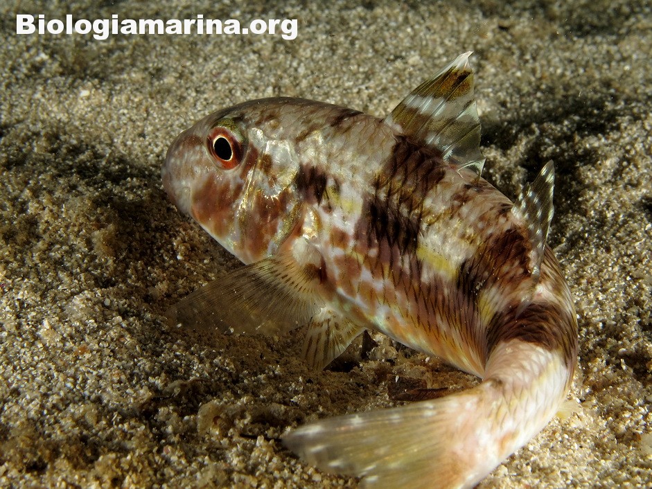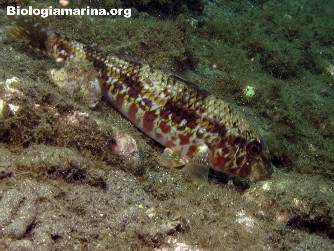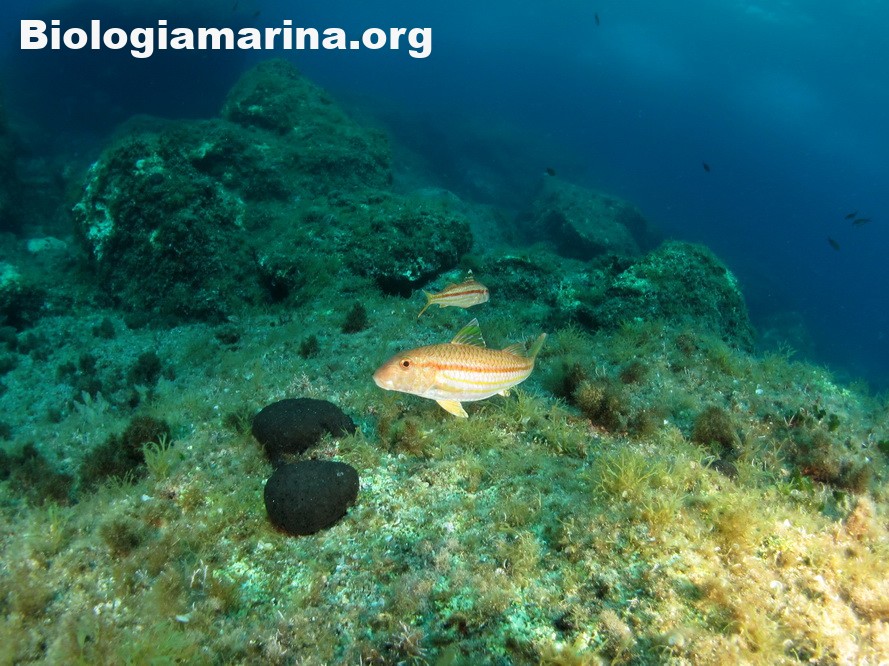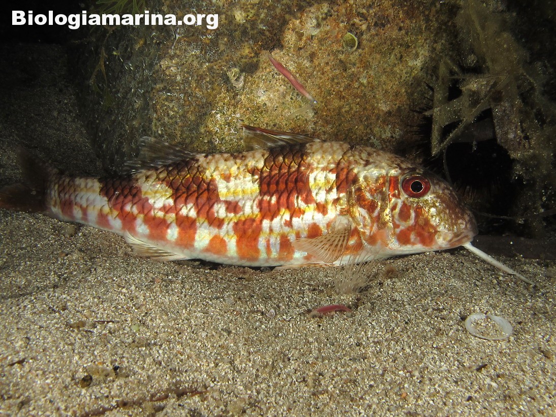 La triglia di scoglio si differenzia dalla triglia da fango per la fronte meno ripida e per la pinna dorsale qui colorata. La triglia di scoglio sarà sicuramente compagna di tante nostre immersioni in basso e medio fondale. Potremo notarla rovistare freneticamente  nel substrato roteando con i due barbigli tattili alla ricerca di cibo (piccoli crostacei, piccoli molluschi o piccoli anellidi). Durante la sua opera di (fresatura) del substrato la vedremo accompagnata  da tordi, donzelle e saraghi, pronti ad approfittare della messa a nudo di tante piccole prede.