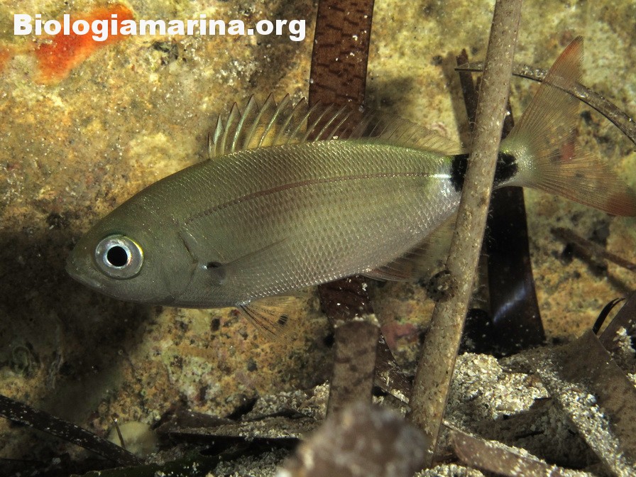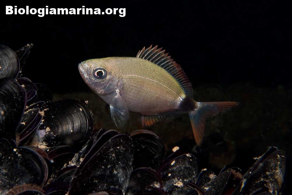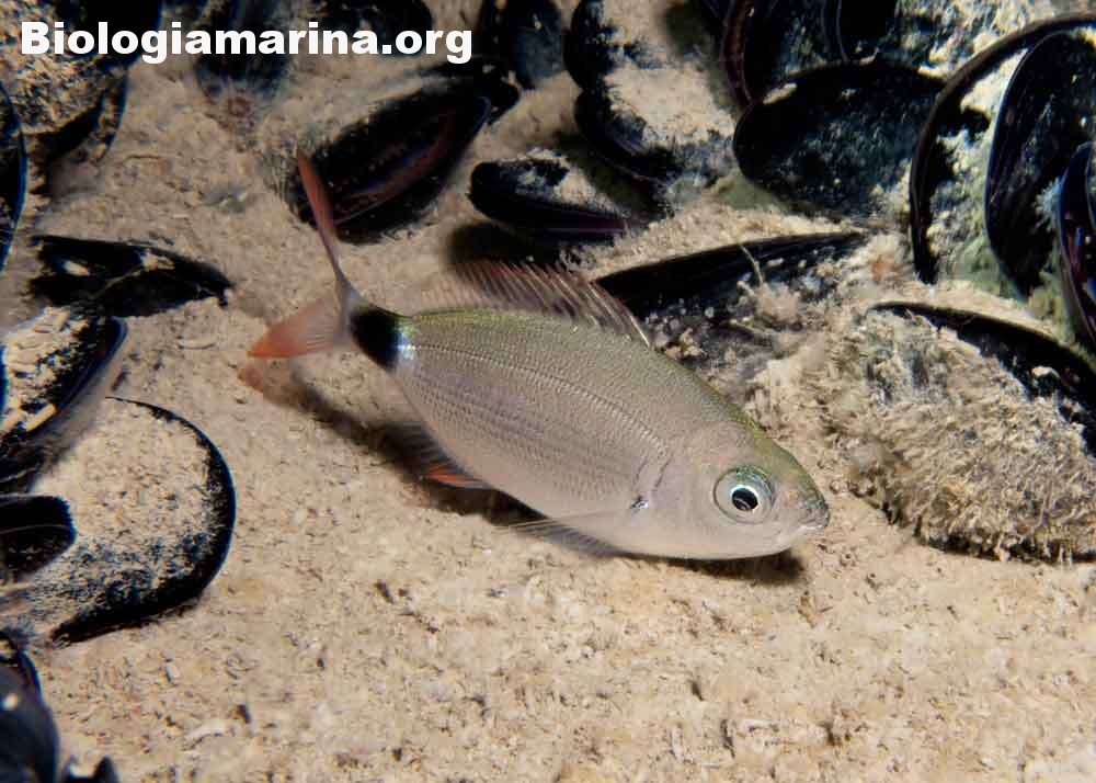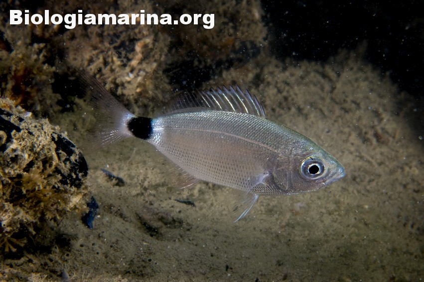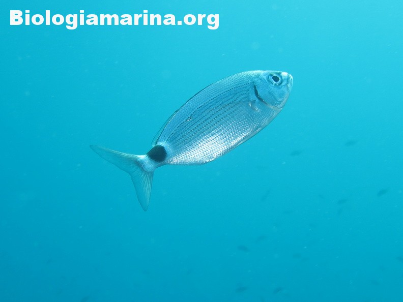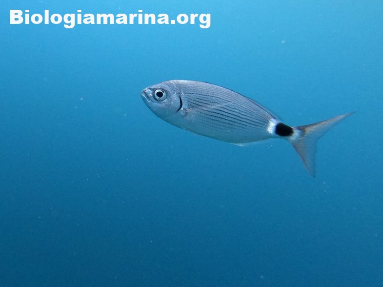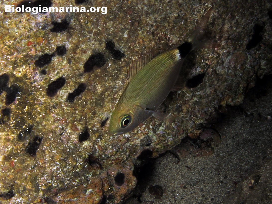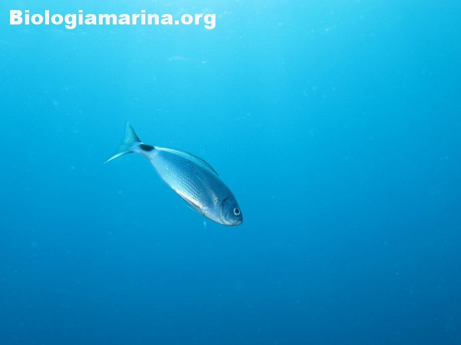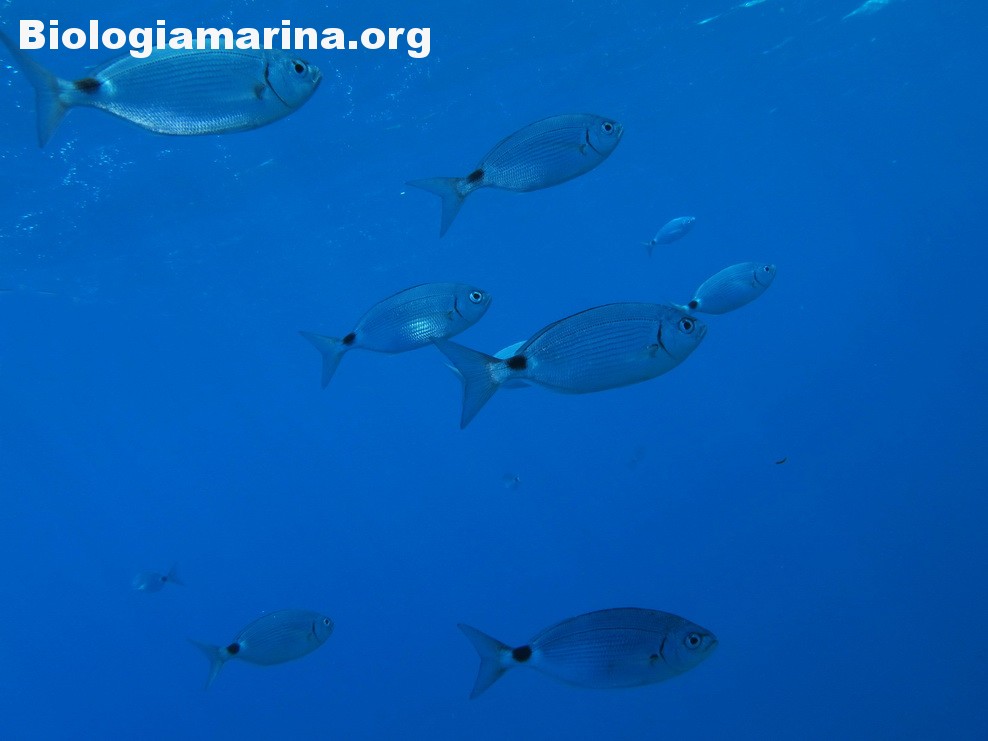 L’occhiata è uno sparide curiosissimo, per quanto timido e diffidente. Vive per lo più in prossimità della costa in acqua libera. Non è difficile incontrarla nelle nostre tappe di decompressione a pochi metri di profondità, quando ci gira attorno in continuazione.
