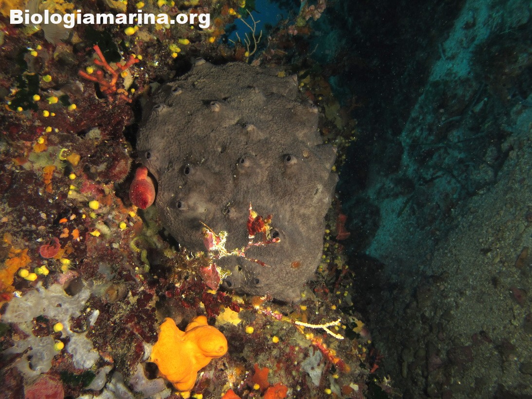 La spugna scalare ha buone dimensioni con forma massiva e globosa, quand’anche lobata