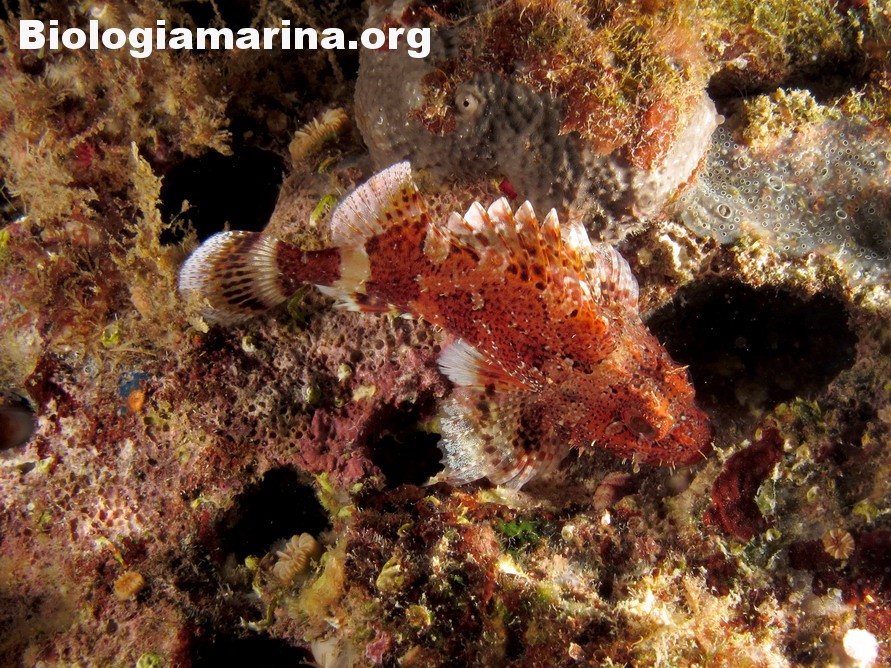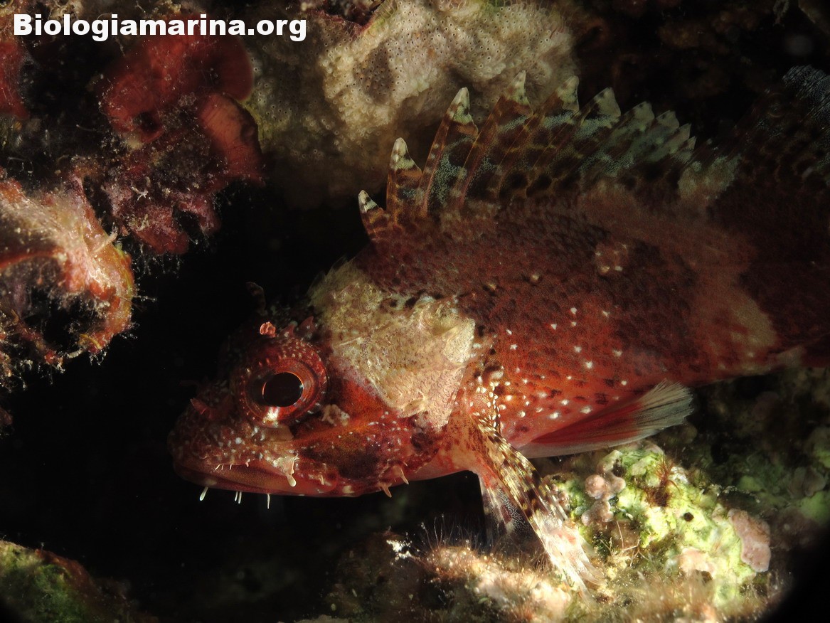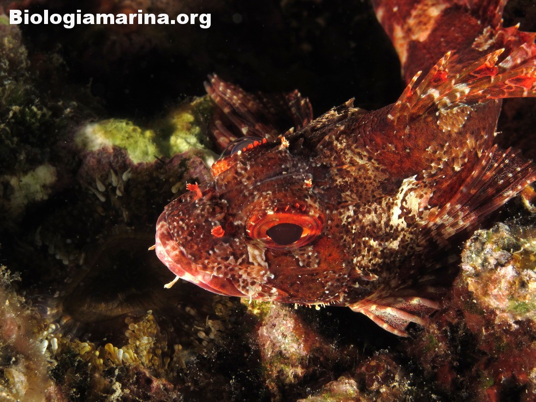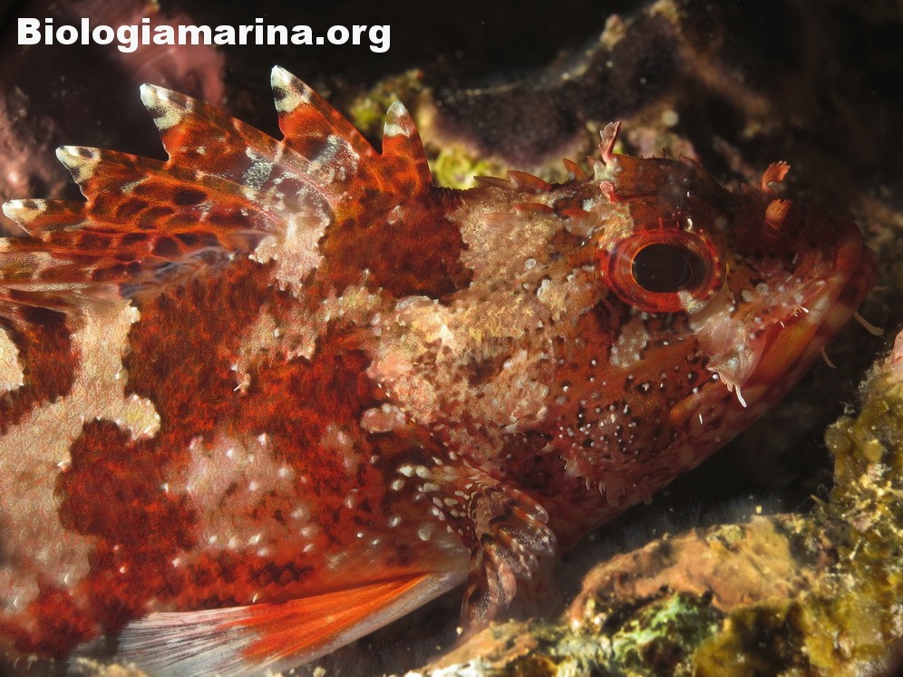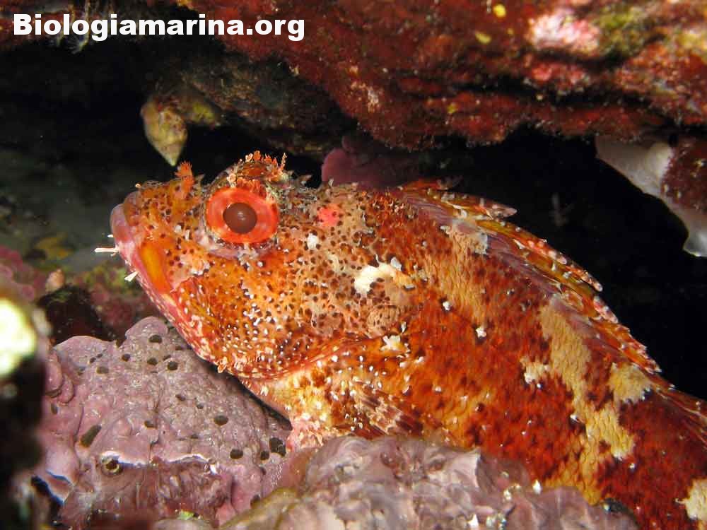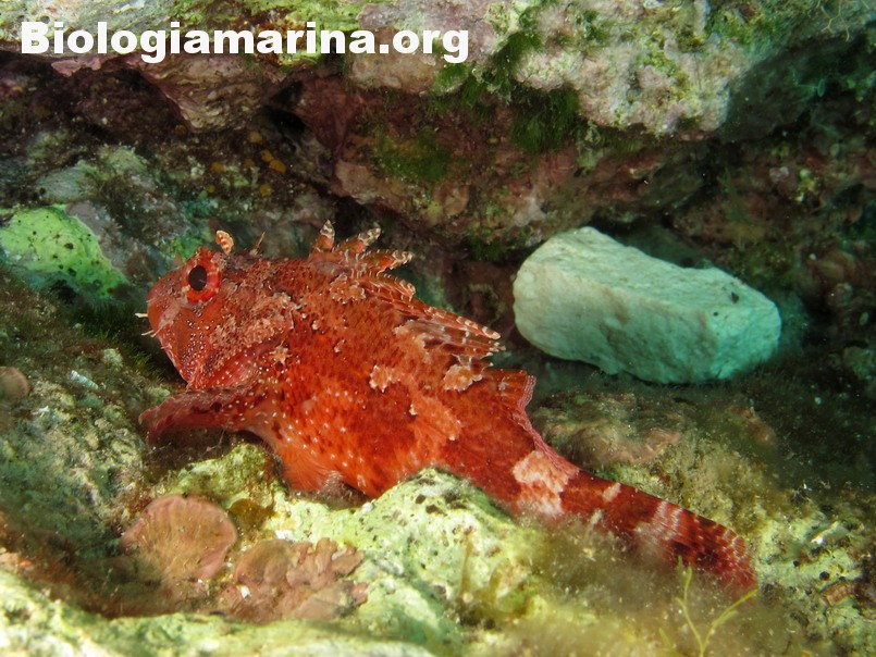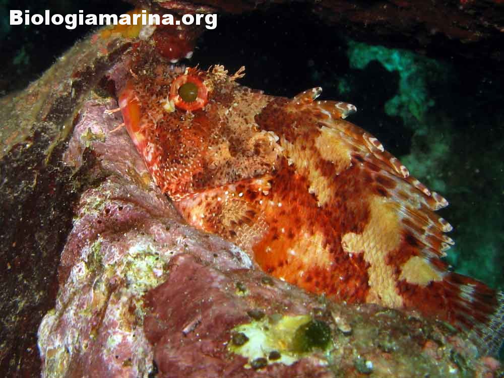 Gli Scorpenidi sono pesci muniti di spine dorsali e opercoli capaci di iniettare un potente veleno, non mortale ma estremamente doloroso. Il dolore acuto in immersione può indurre problemi notevoli. L’animale resta immobile, camuffato nell’ambiente, non per difesa ma per caccia; il nuoto, negativo, è a piccoli balzi, scattanti e fulminei, la preda viene letteralmente risucchiata dall’apertura fulminea della grande bocca. Il camuffamento per la caccia è agevolato da un marcato mimetismo cromatico e dalla presenza nel rivestimeno cutaneo di escrescenze, verruche e barbigli.