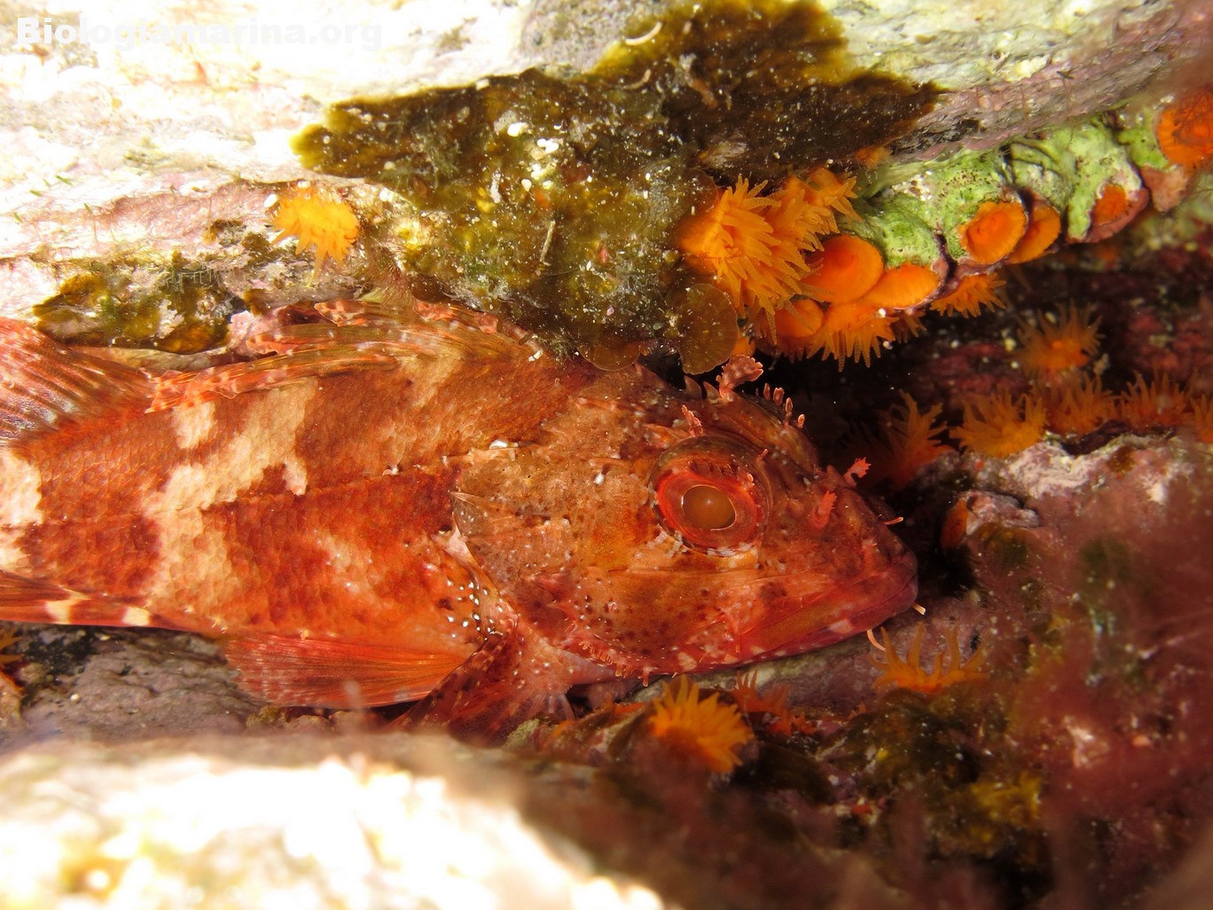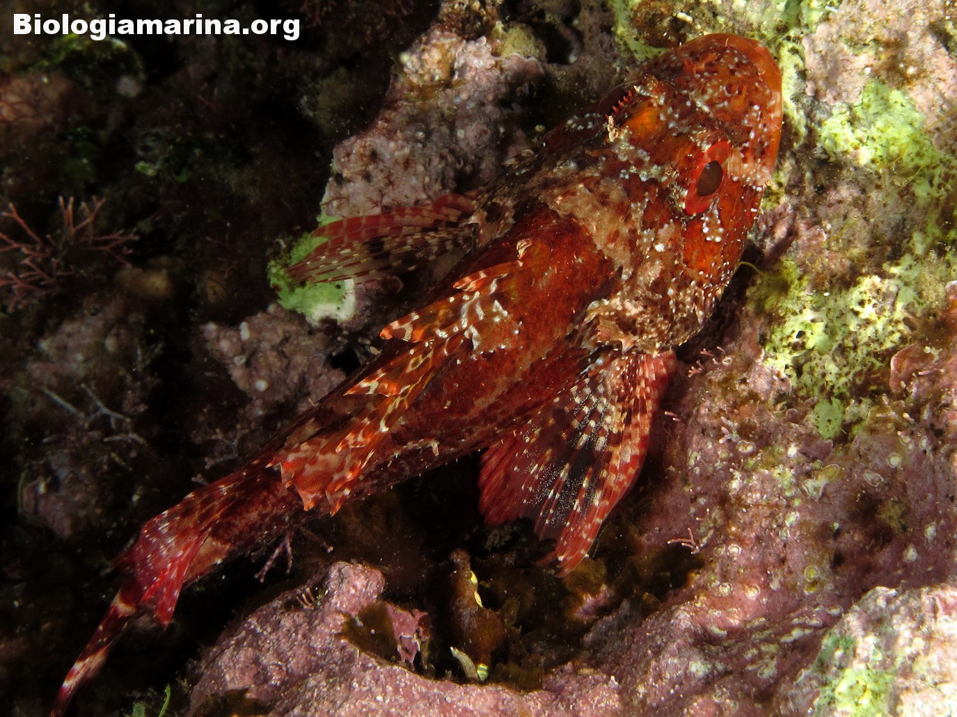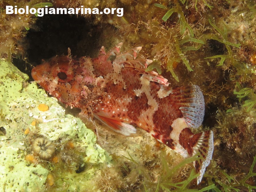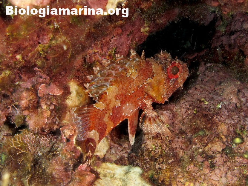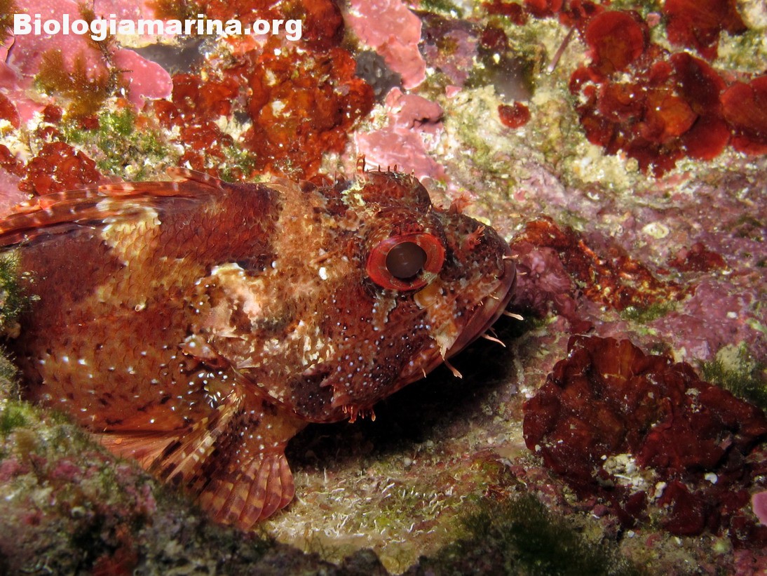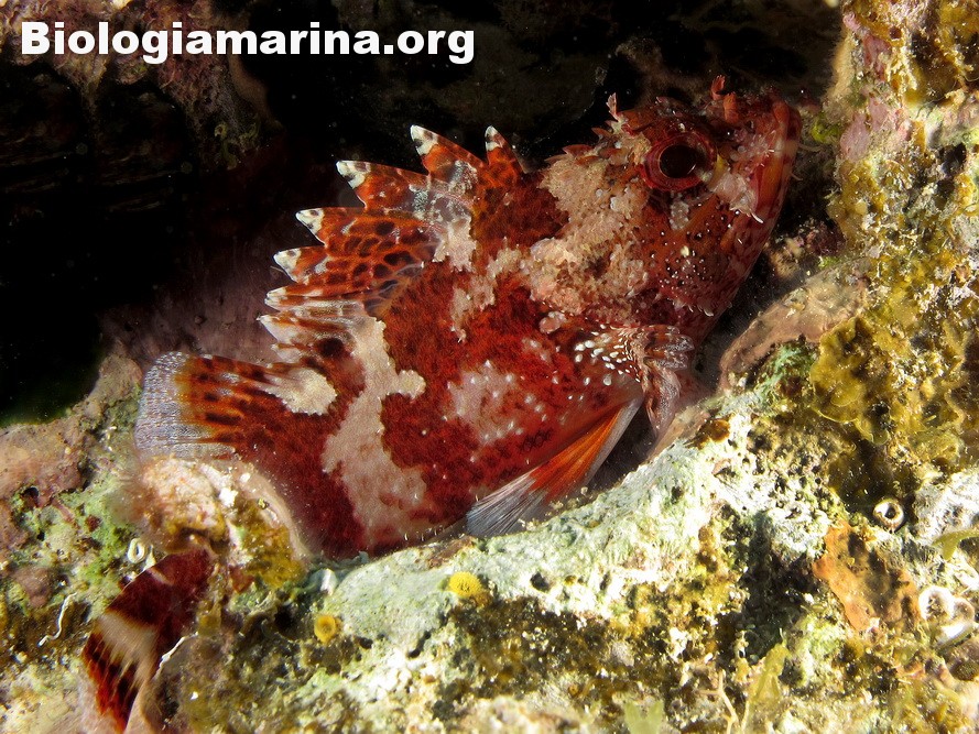 Gli Scorpenidi sono pesci muniti di spine dorsali e opercoli capaci di iniettare un potente veleno, non mortale ma estremamente doloroso. Il dolore acuto in immersione può indurre problemi notevoli. L’animale resta immobile, camuffato nell’ambiente, non per difesa ma per caccia; il nuoto, negativo, è a piccoli balzi, scattanti e fulminei, la preda viene letteralmente risucchiata dall’apertura fulminea della grande bocca. Il camuffamento per la caccia è agevolato da un marcato mimetismo cromatico e dalla presenza nel rivestimeno cutaneo di escrescenze, verruche e barbigli.