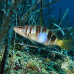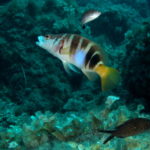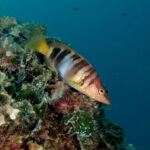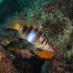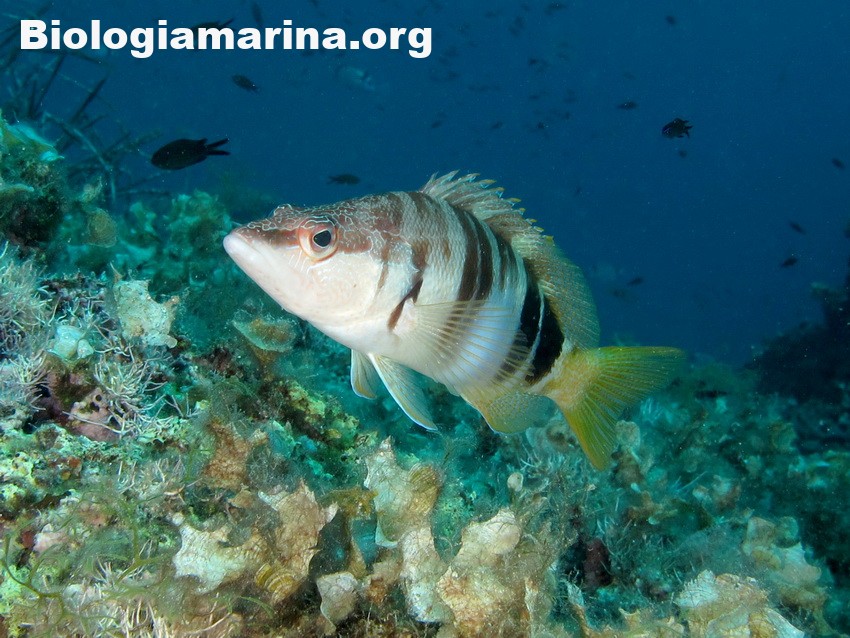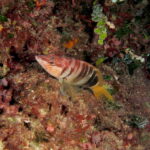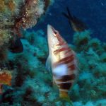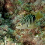 Lo sciarrano scriba è tra i serranidi quello che incontreremo più spesso, curiosissimo e a volte con atteggiamento di sfida nei nostri confronti. Il nome scriba discende dal fatto che soprattutto nel capo vi è un pattern che ci richiama ad una forma di scrittura.