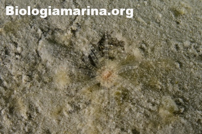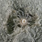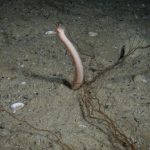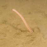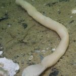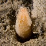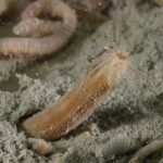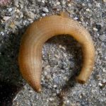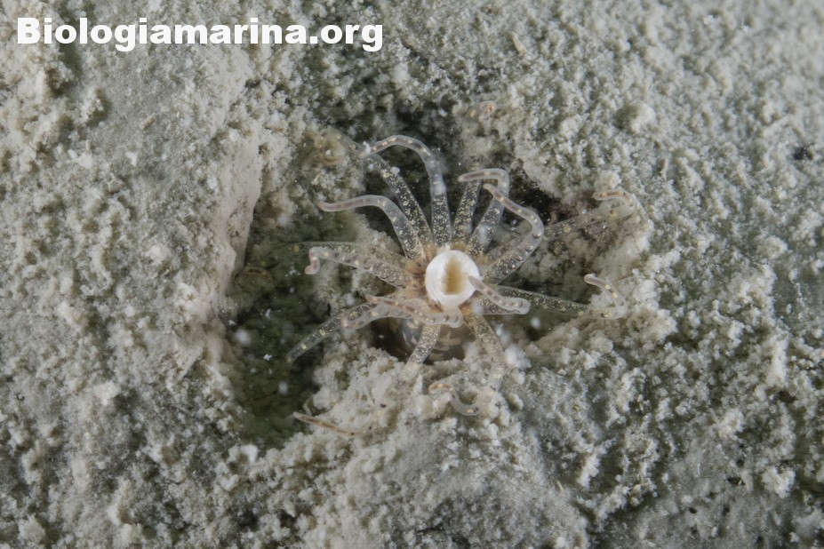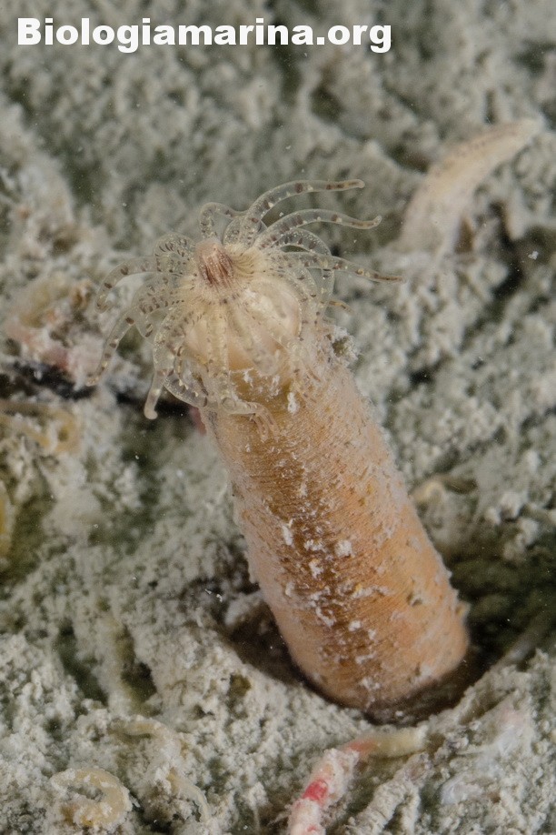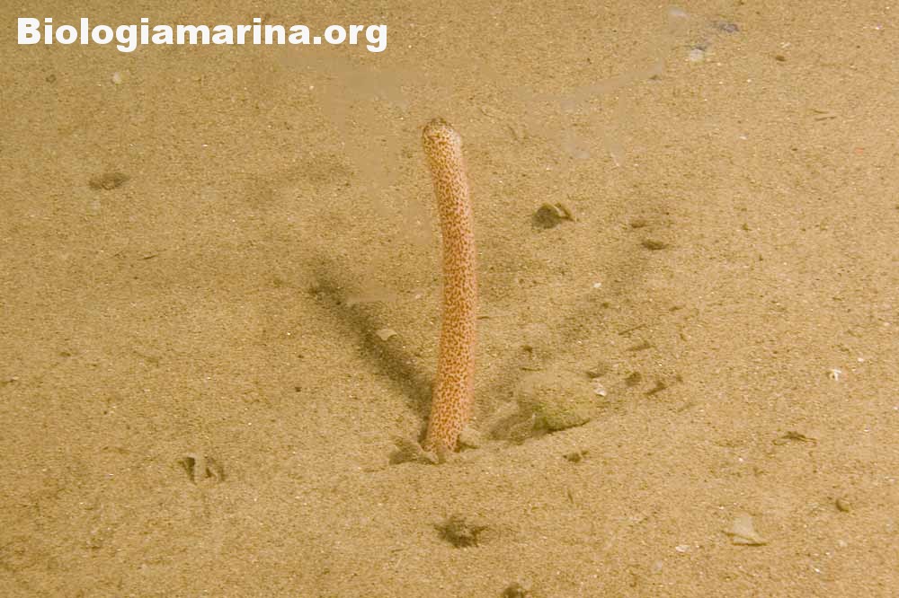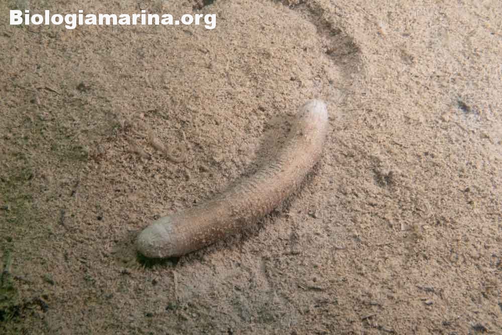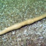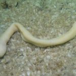 Il sipinculo nudo, stretto cugino minore del sipinculo fiscosoma è un “verme” di buone dimensioni, stanziale nella sua galleria nel sedimento, dalla quale sporge l’apparato boccale per la cattura del cibo.