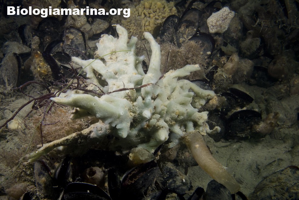 :Spugne calcareecon struttura ascon, sycon o leucon, di piccole dimensioni e frequenti a basse profondità.