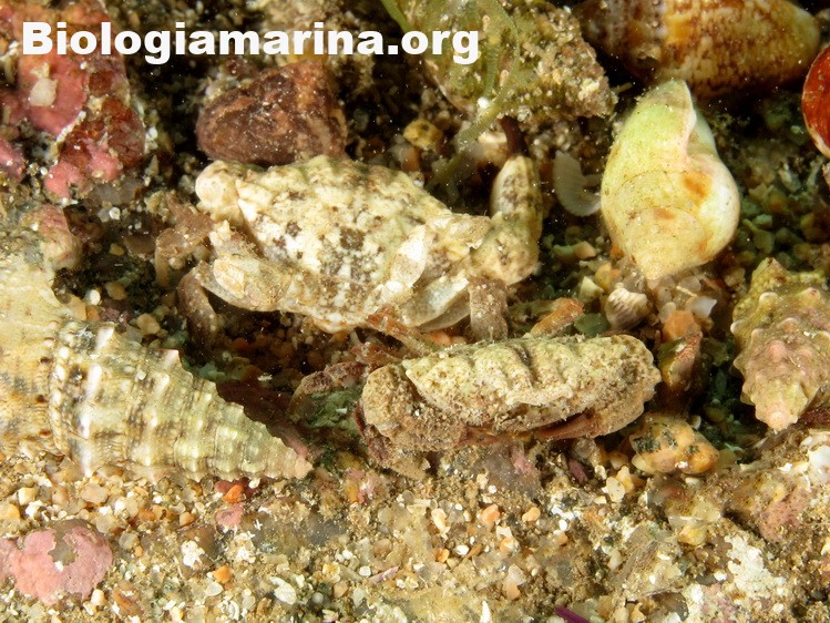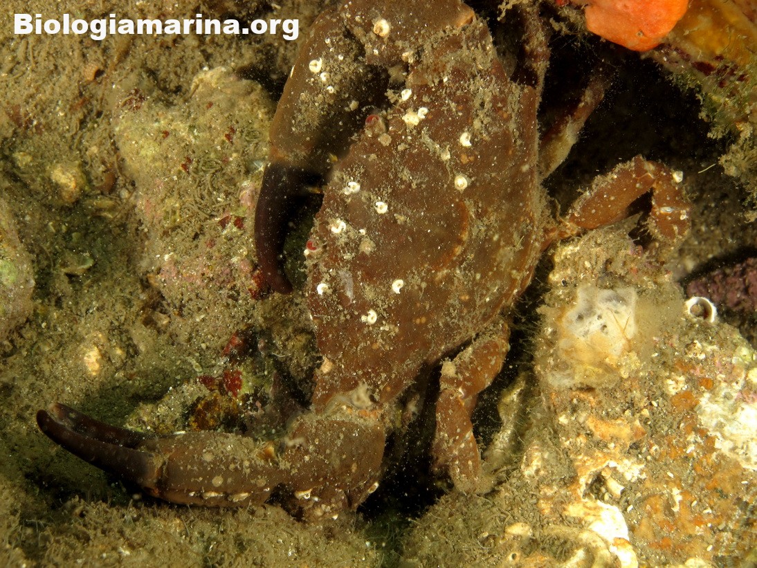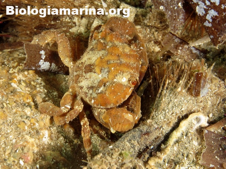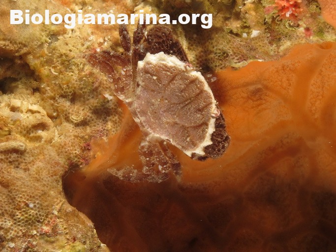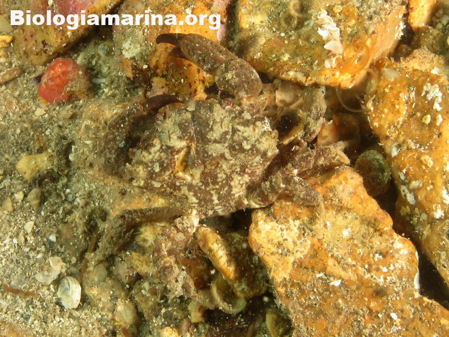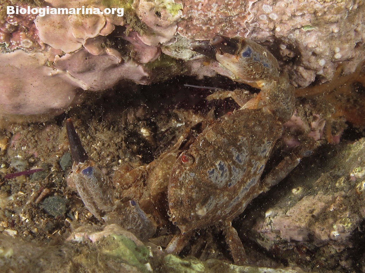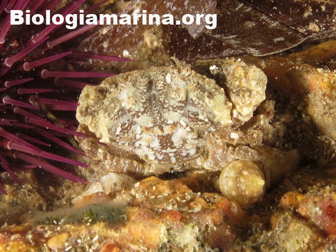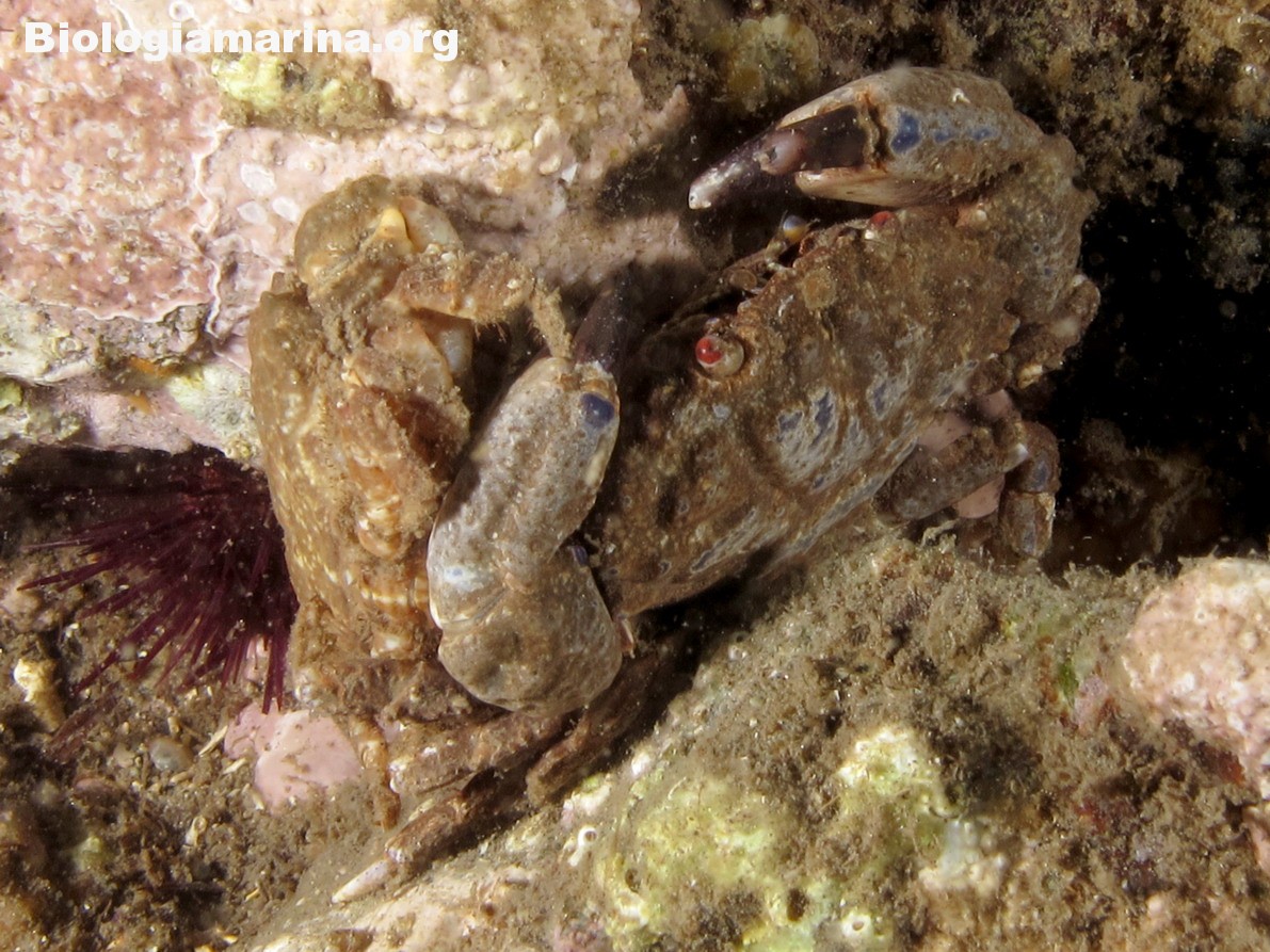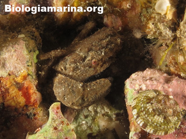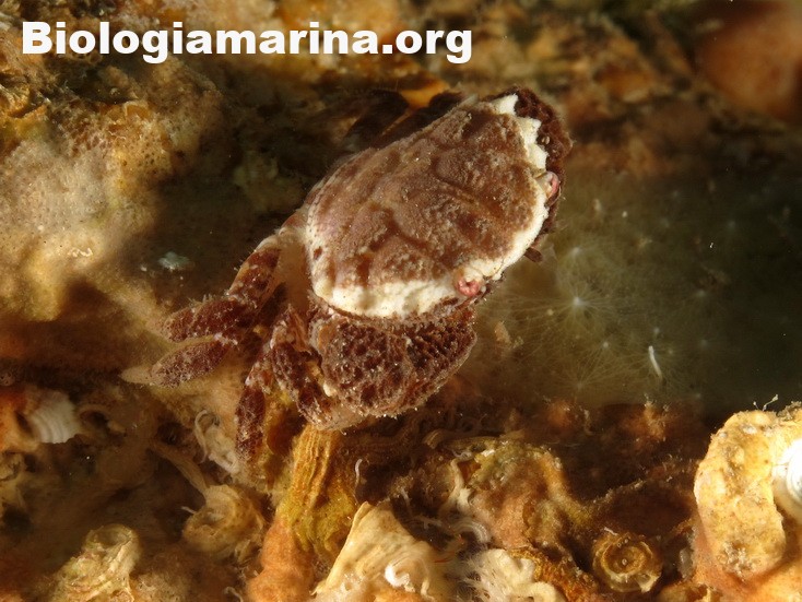 Il granchio granulato è granchio di piccole dimensioni, uso nascondersi tra le spaccature del substrato.