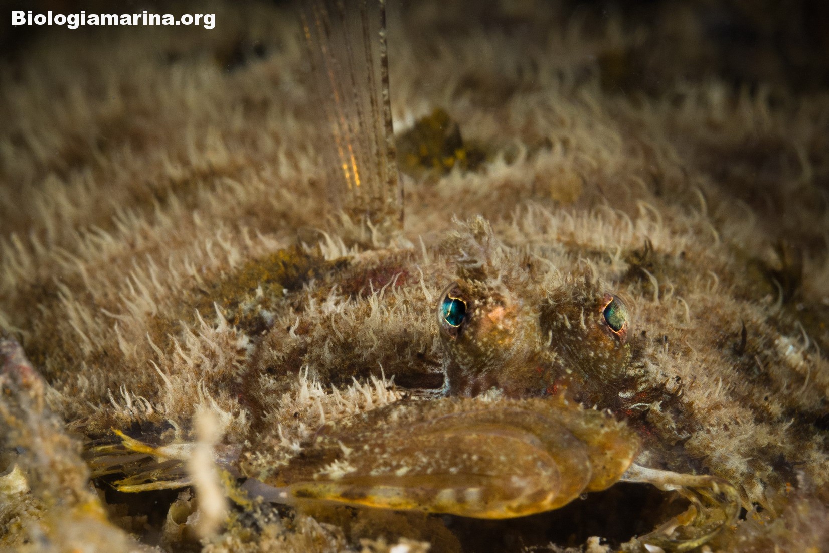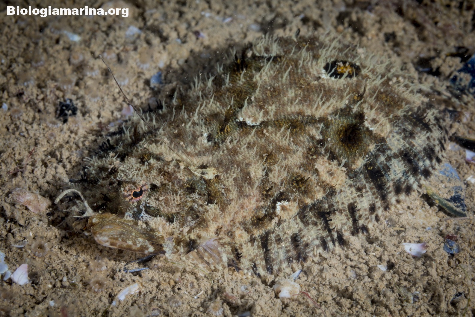 Il rombo peloso, è un pesce piatto sinistrorso, che contrariamente ai suoi diretti cugini, vive in ambienti rocciosi dove, per nascondersi, non potendo insabbiarsi, si appiattisce in ventosa anche in pareti verticali.